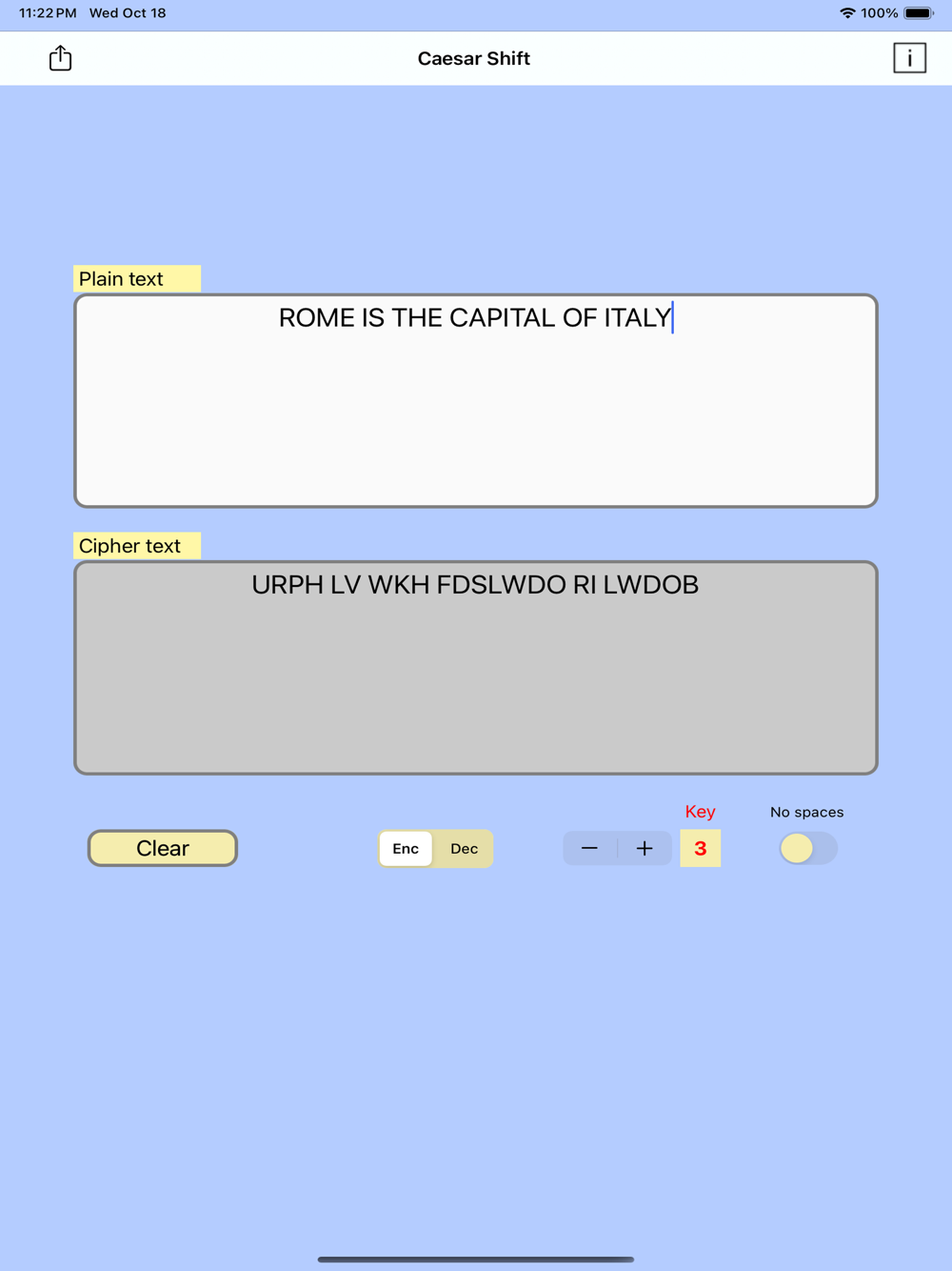 With this app you can decrypt and encrypt messages with Caesar method.