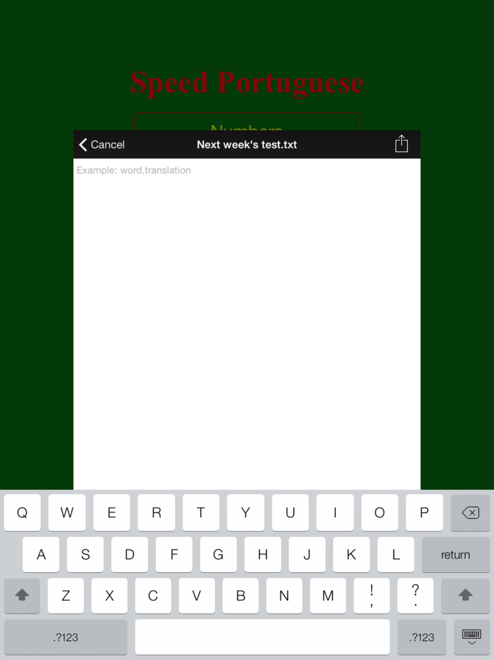 Quickest way to get started on Portuguese vocabulary. Better than flashcards since you can learn at the same time as testing yourself and the app doesn't let you cheat!