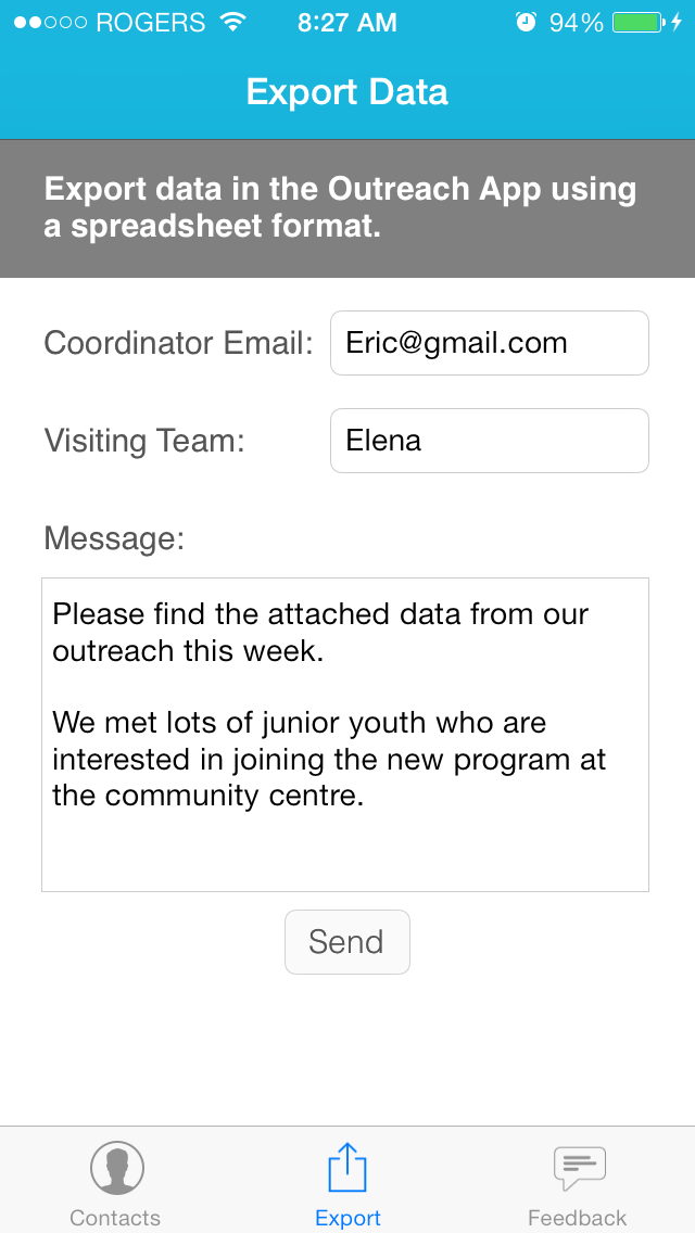The Outreach App is a tool that is used to collect and store data during community outreach activities. It makes it easy to get to know your neighbours, record their contact information, identify what community activities they are interested in and share the information with a community coordinator.