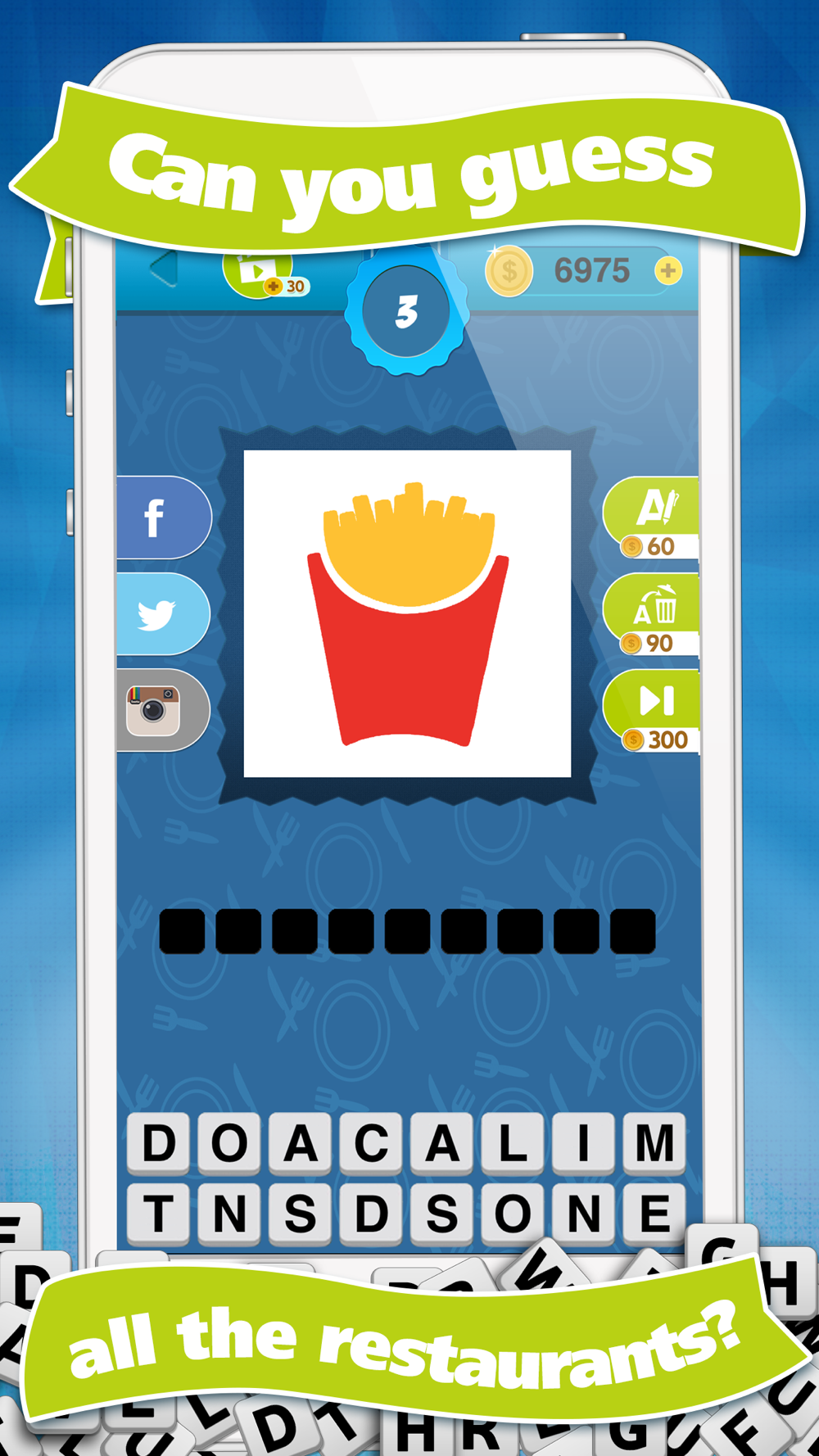 -▸ Guess the restaurant logo displayed on screen by filling in available letters