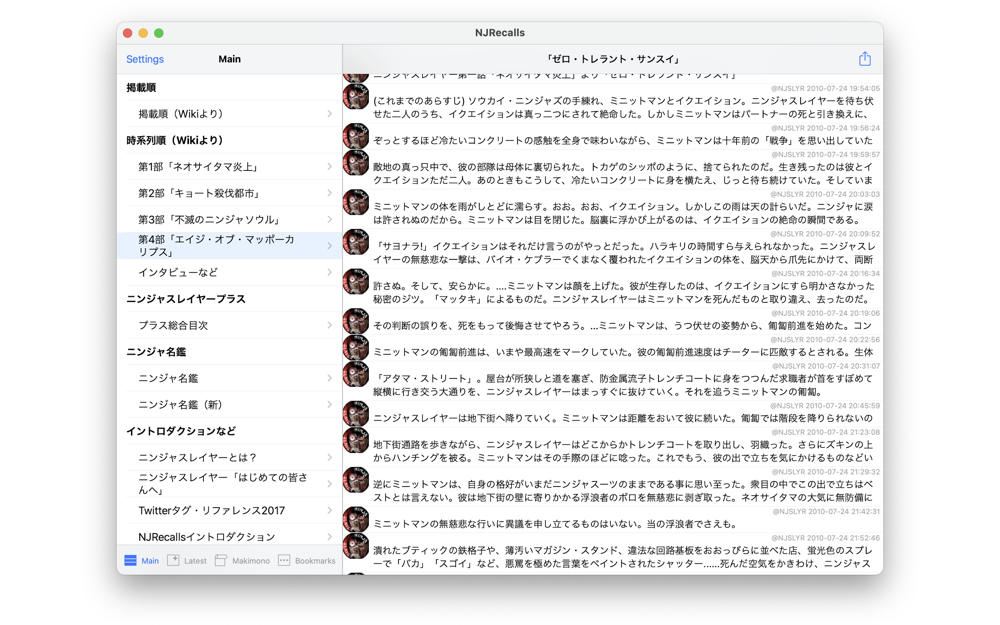 NJRecalls is the unofficial app to browse japanese translation of "Ninja Slayer", published with Twitter account @NJSLYR.