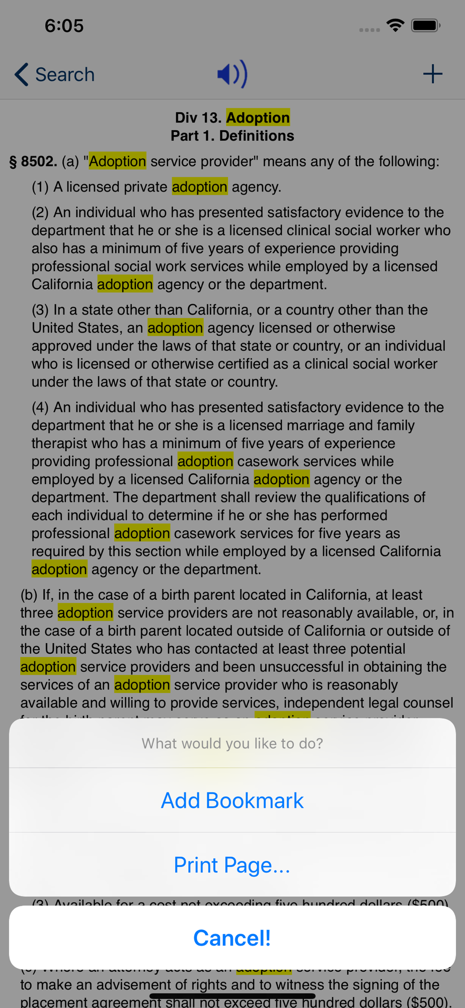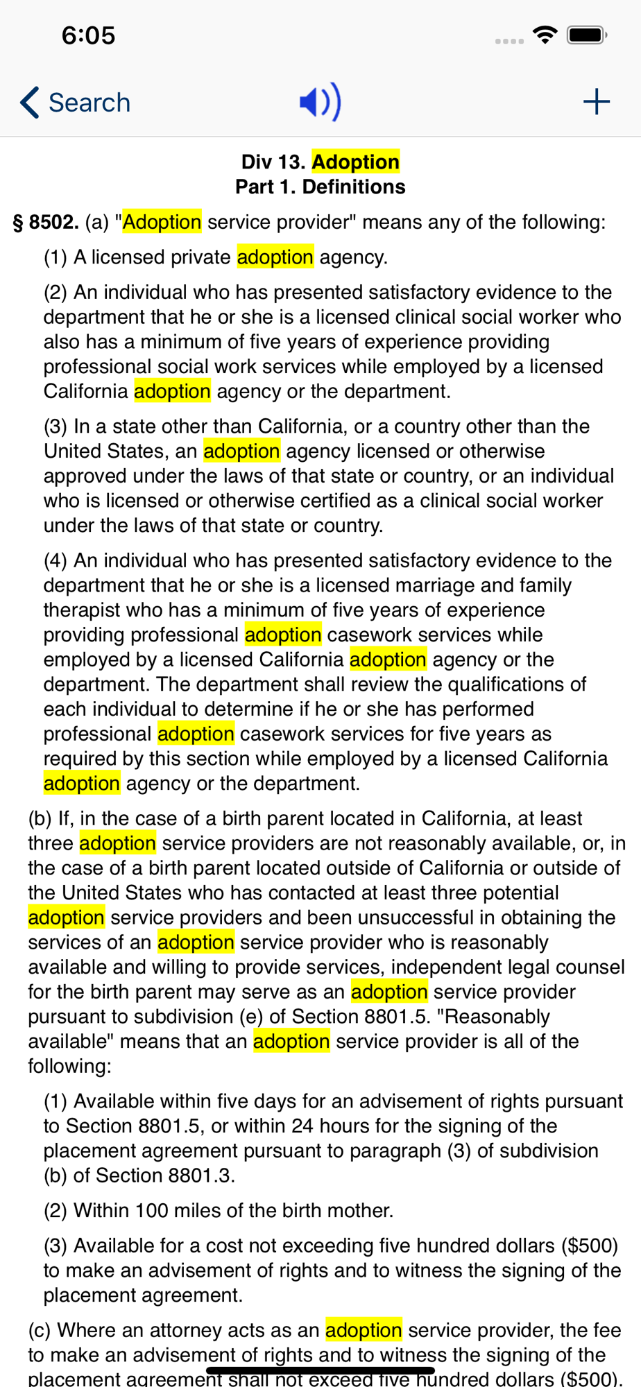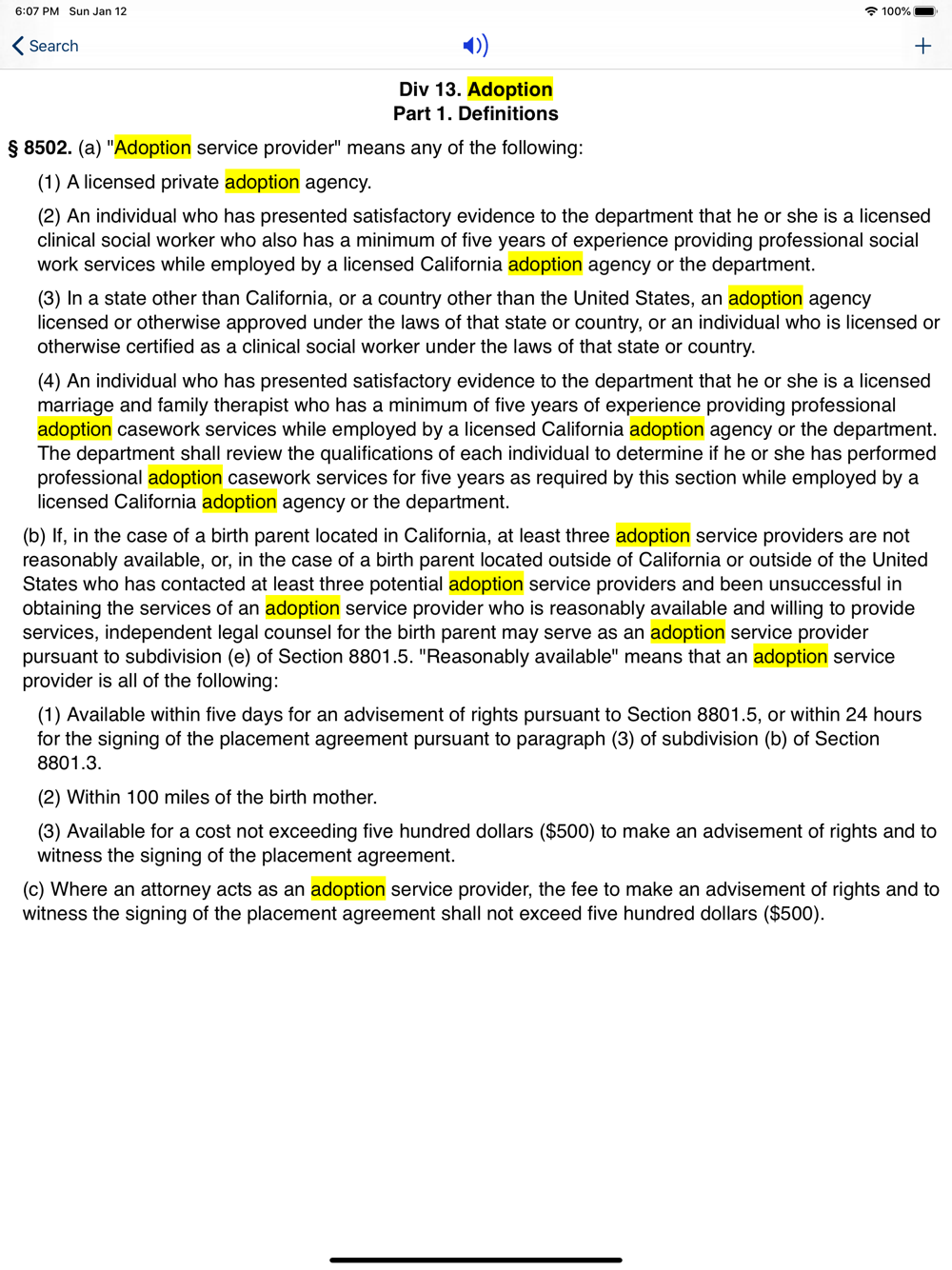 This application provides the full text of the California Family Code in an easily readable and searchable format for your iPhone, iPad or iPod Touch.