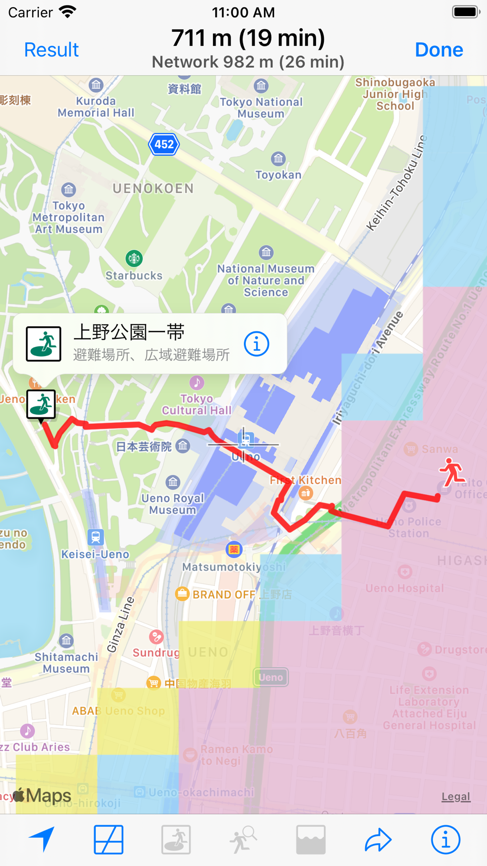 It searches the nearest shelter from a location that is the center of a screen map. And changes to detail check mode. You can check the nearest shelter and related floods in this mode. The finish is to tap the “Done” button.