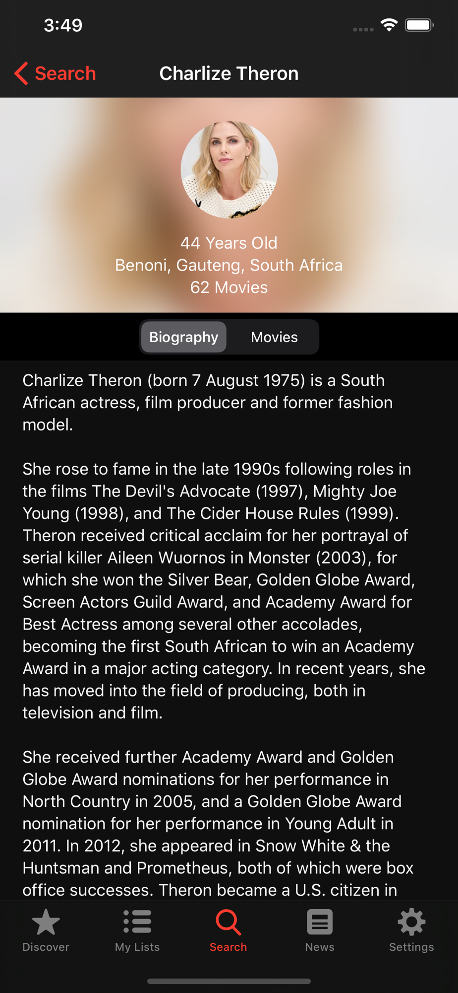 - Cast profiles. Learn more about your favorite actors/directors and browse their movies.