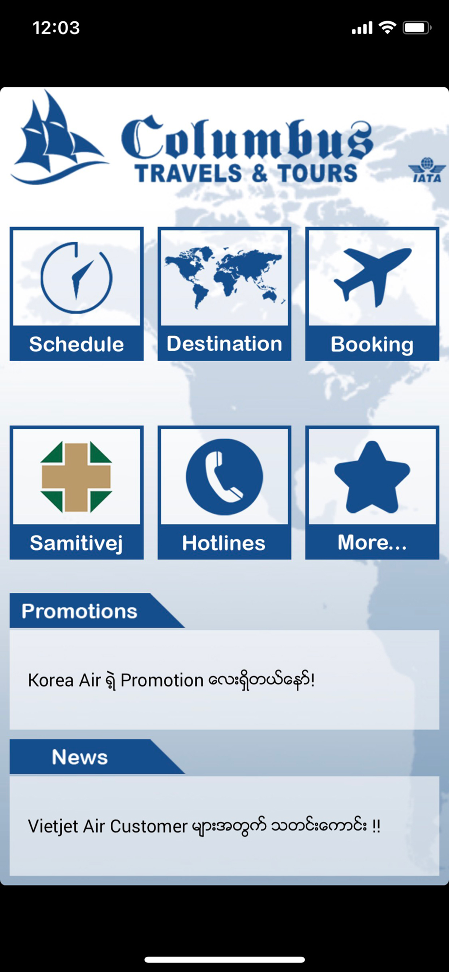 A flight schedule & air ticket booking app from Columbus Travel & Tour Co., Ltd. Yangon, Myanmar.