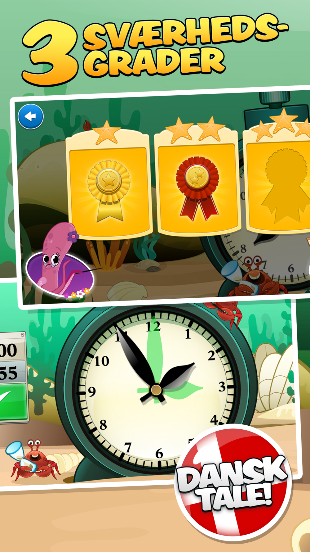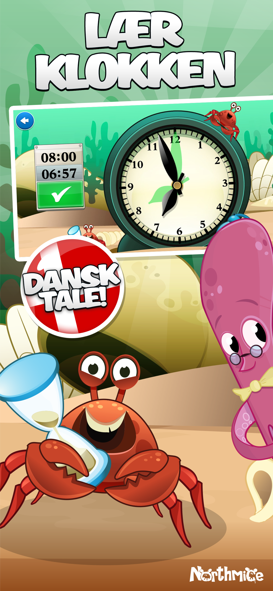 I 'Lær Klokken med Miniklub' møder dit barn de skøre tidskrabber, som holder til ved det store sunkne ur. Sammen med lærerinden Marina skal dit barn lære om klokken med timer, kvarterer og minutter.