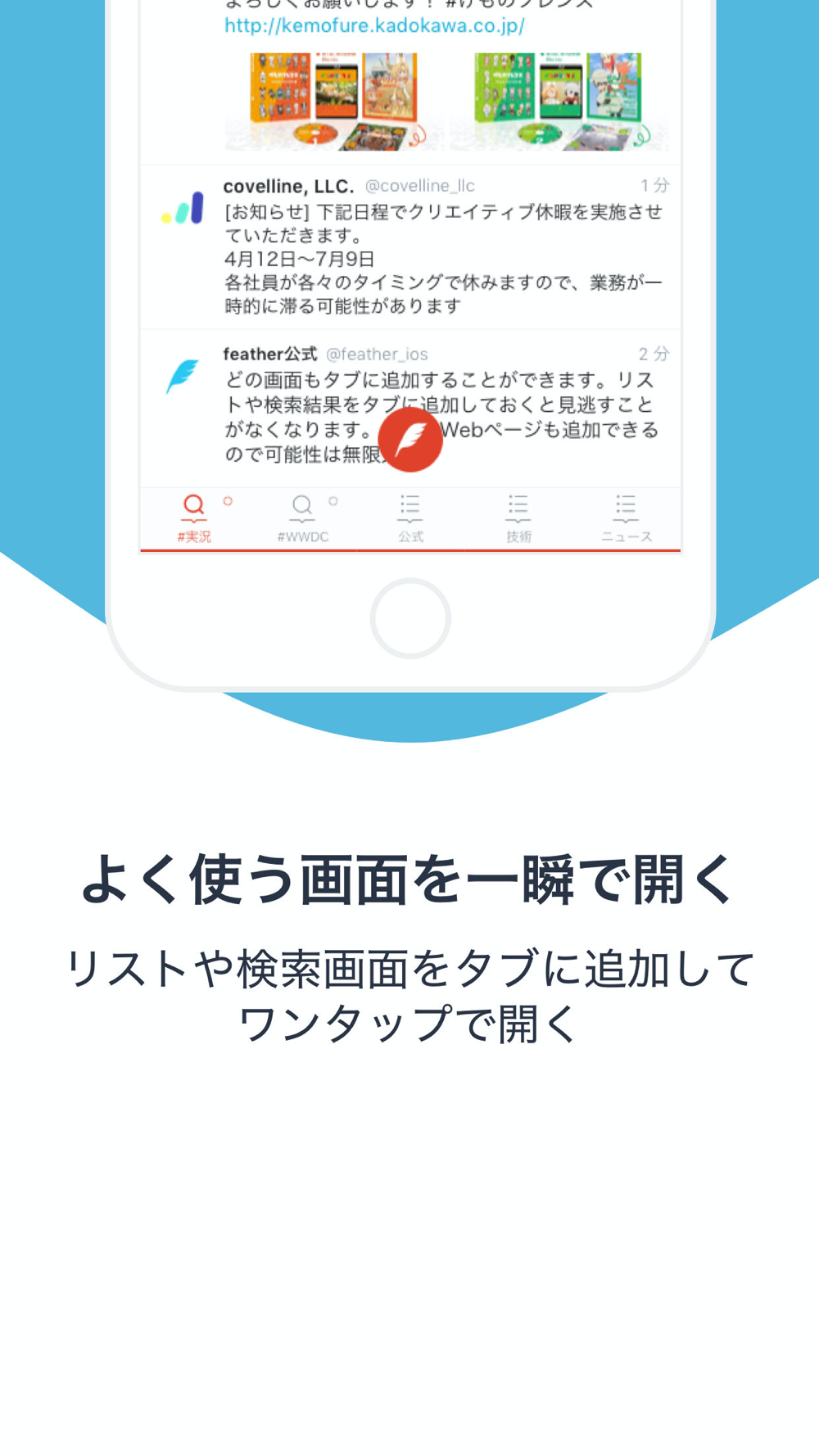 よく使うリストや複数アカウントのタイムラインをタブに並べてワンタップで表示!