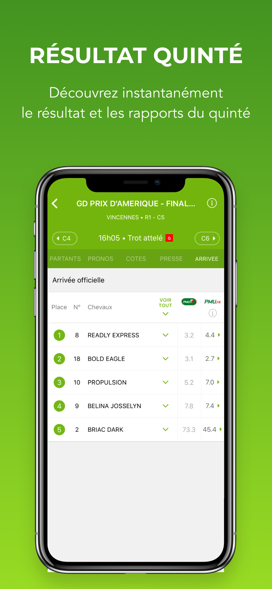 - Les résultats des courses hippiques en direct avec l'arrivée provisoire puis officielle,