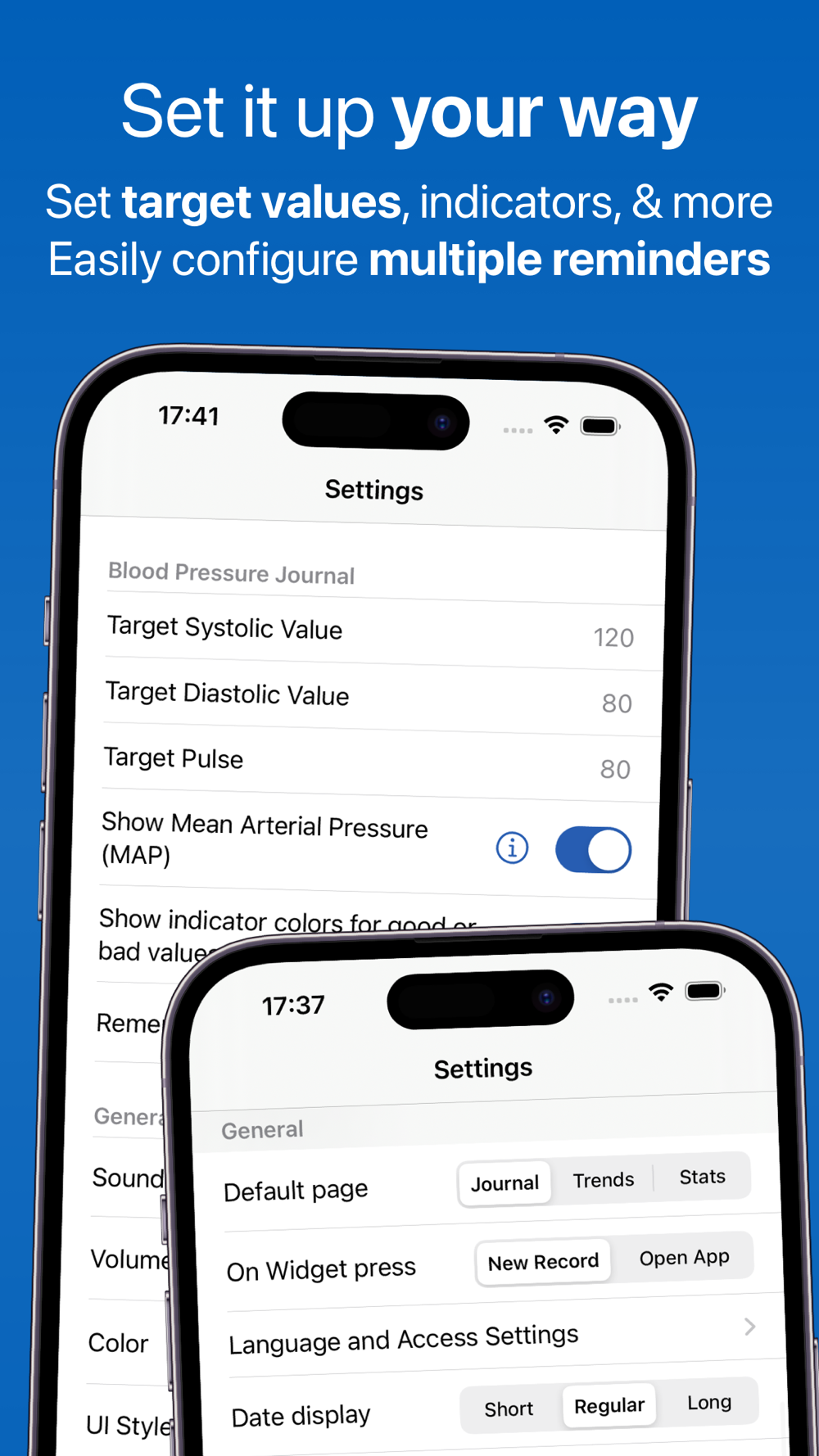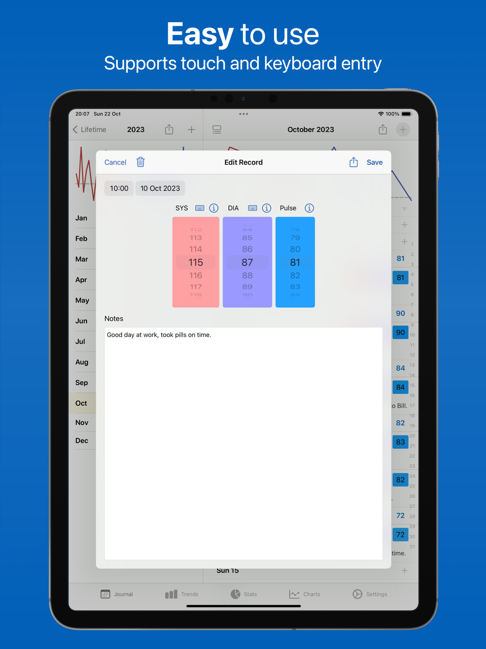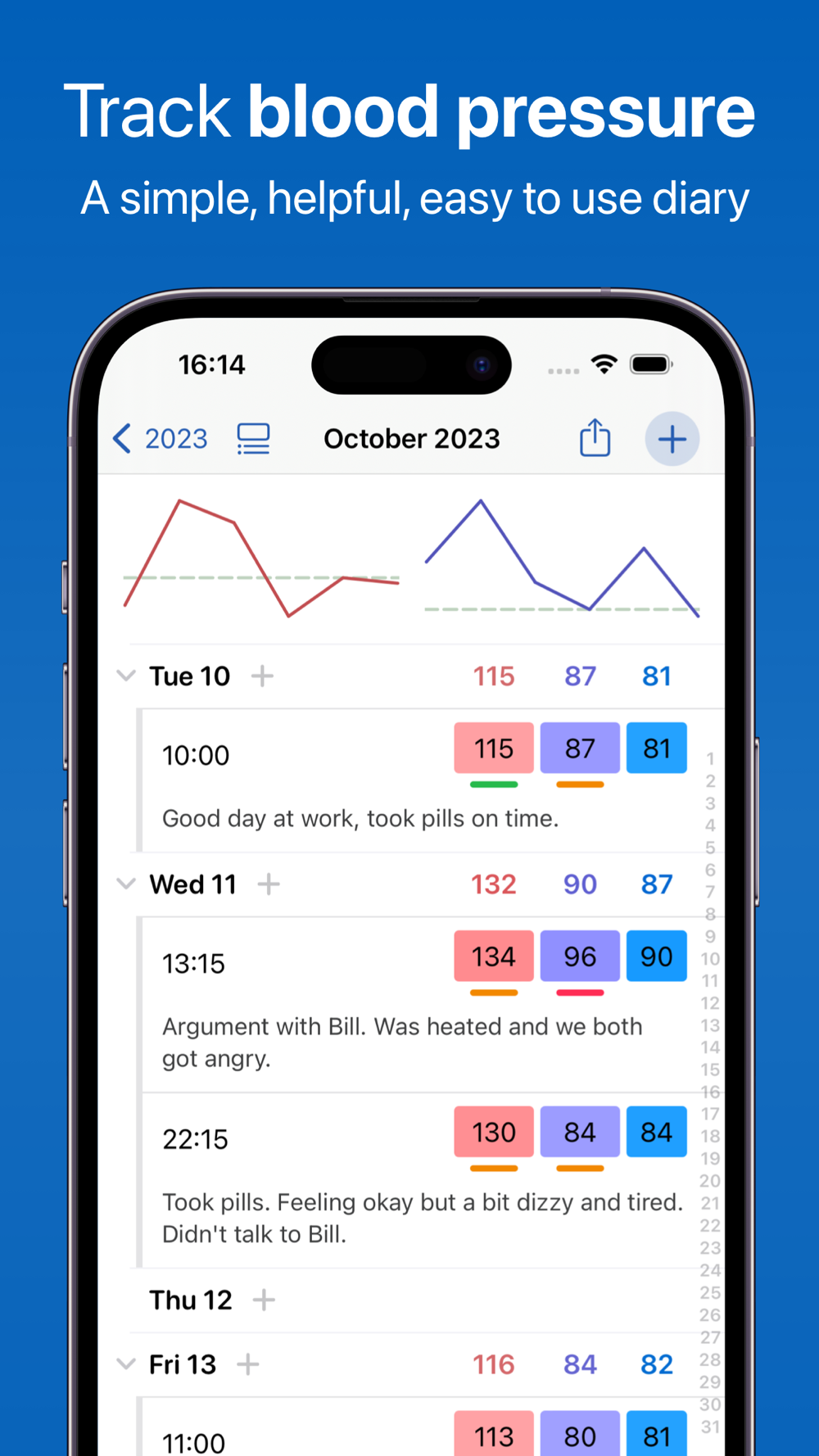 • Track your blood pressure across time.