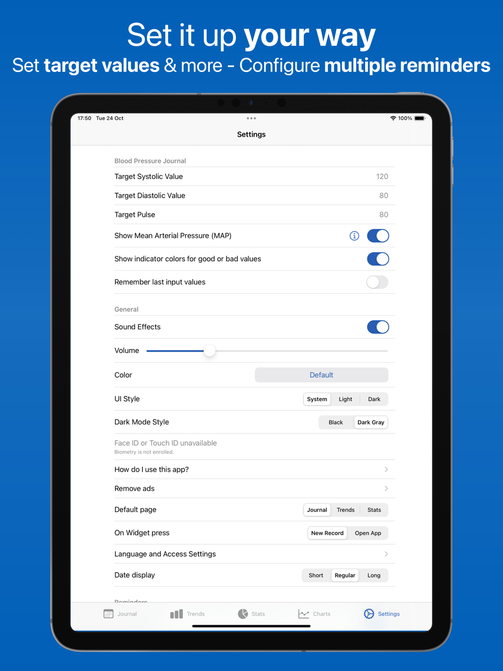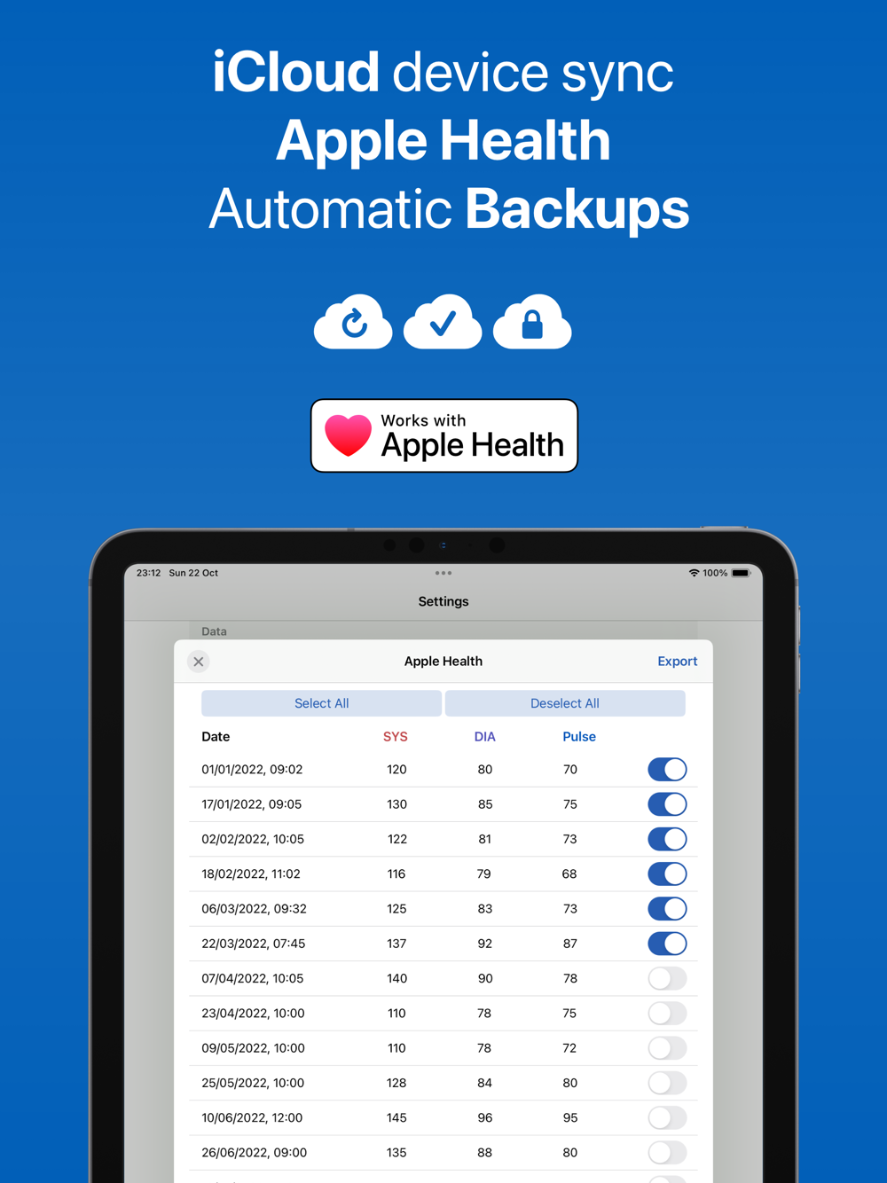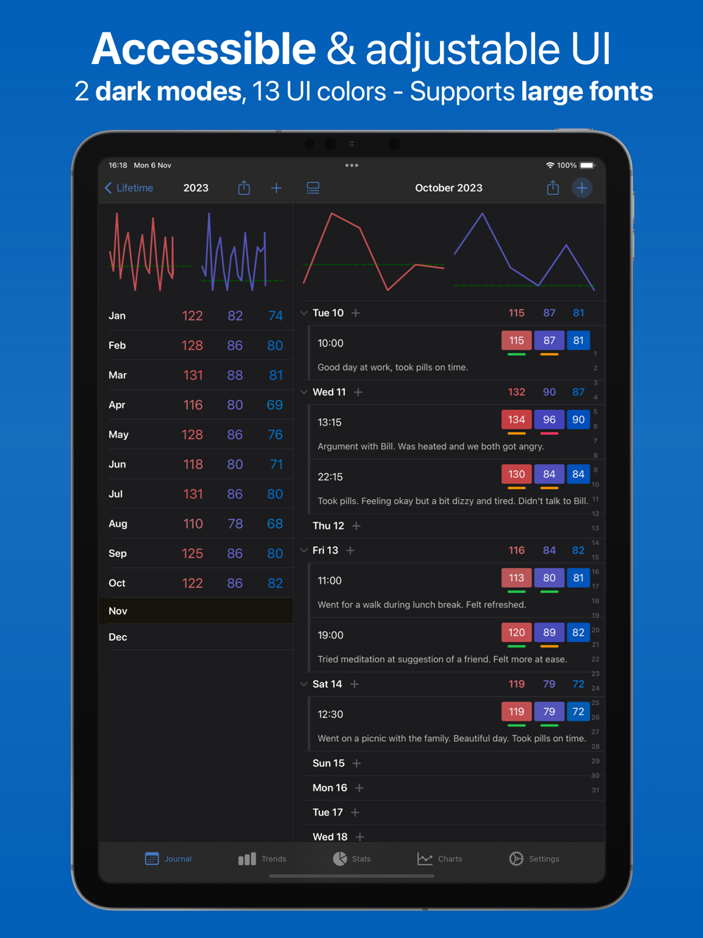 • Track your blood pressure across time.
