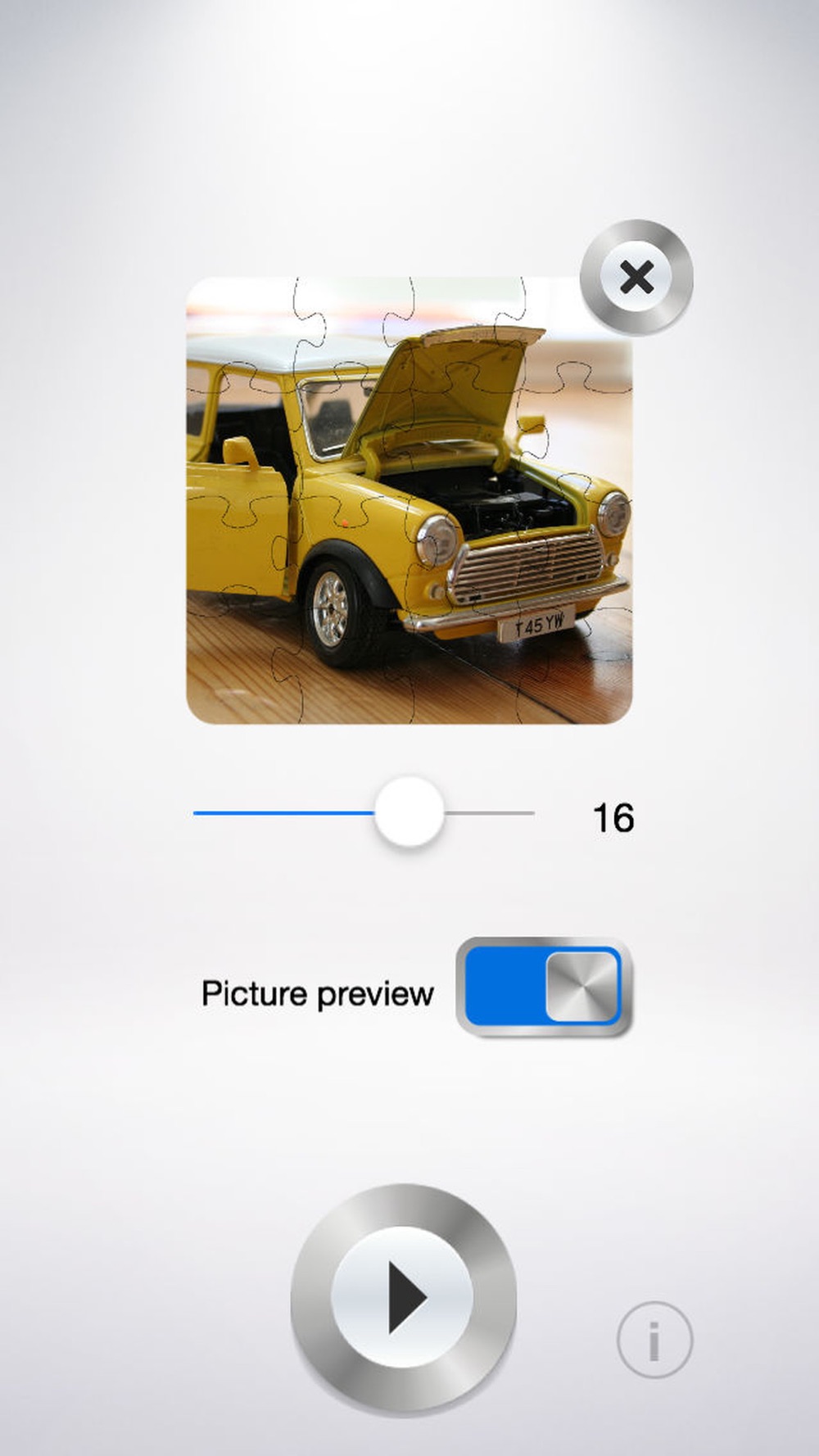 Select the picture from your photo album, choose the number of pieces you want your puzzle to have (up to 36 pieces; the minimum is four pieces, which is great for improving your toddler's spatial skills), and you are ready to start!