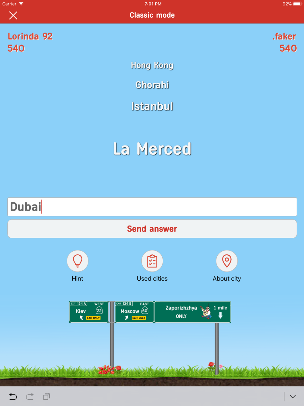 City Names is a classic word chain game for children and adults! Probably no one who has not played it yet. And now this awesome game can always be in your iPhone, iPod Touch or iPad!