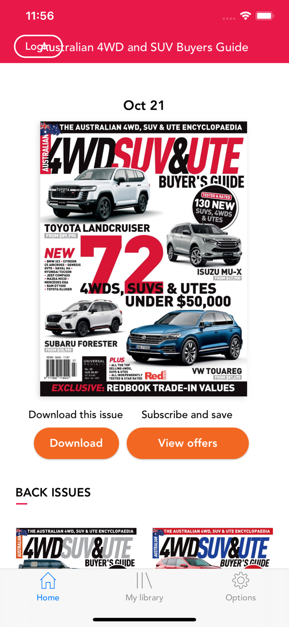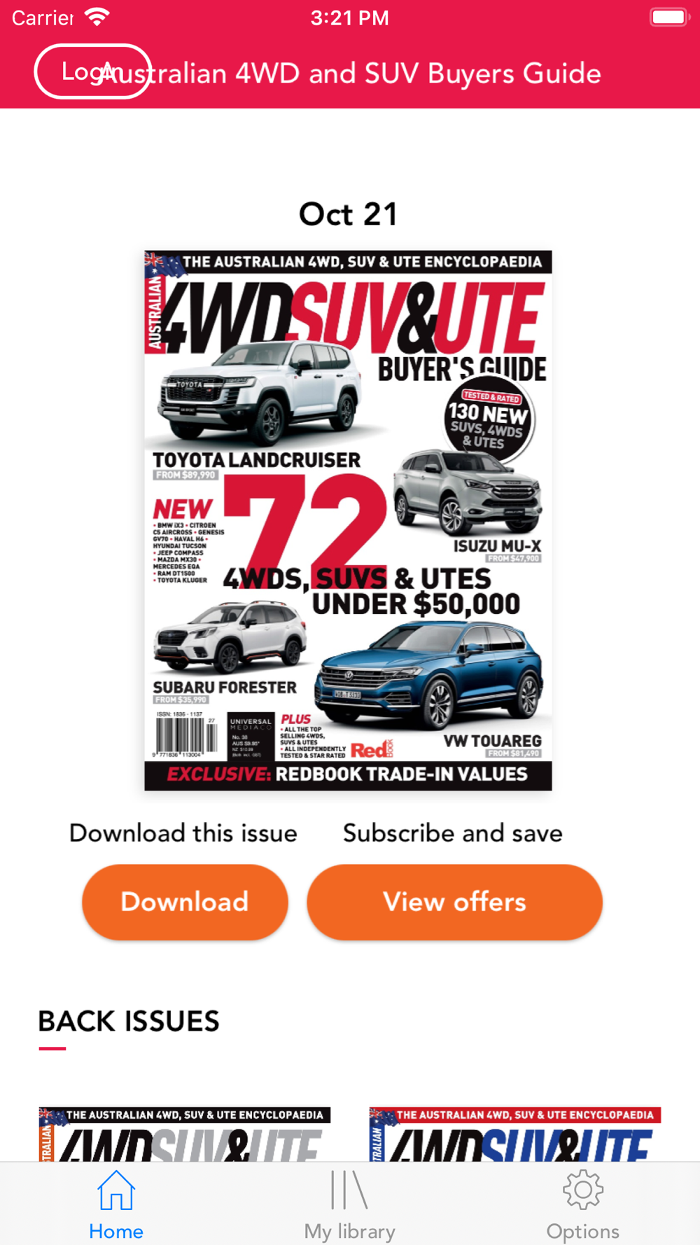 Subscriptions are also available within the application. A subscription will start from the latest regular issue at the time of purchase.