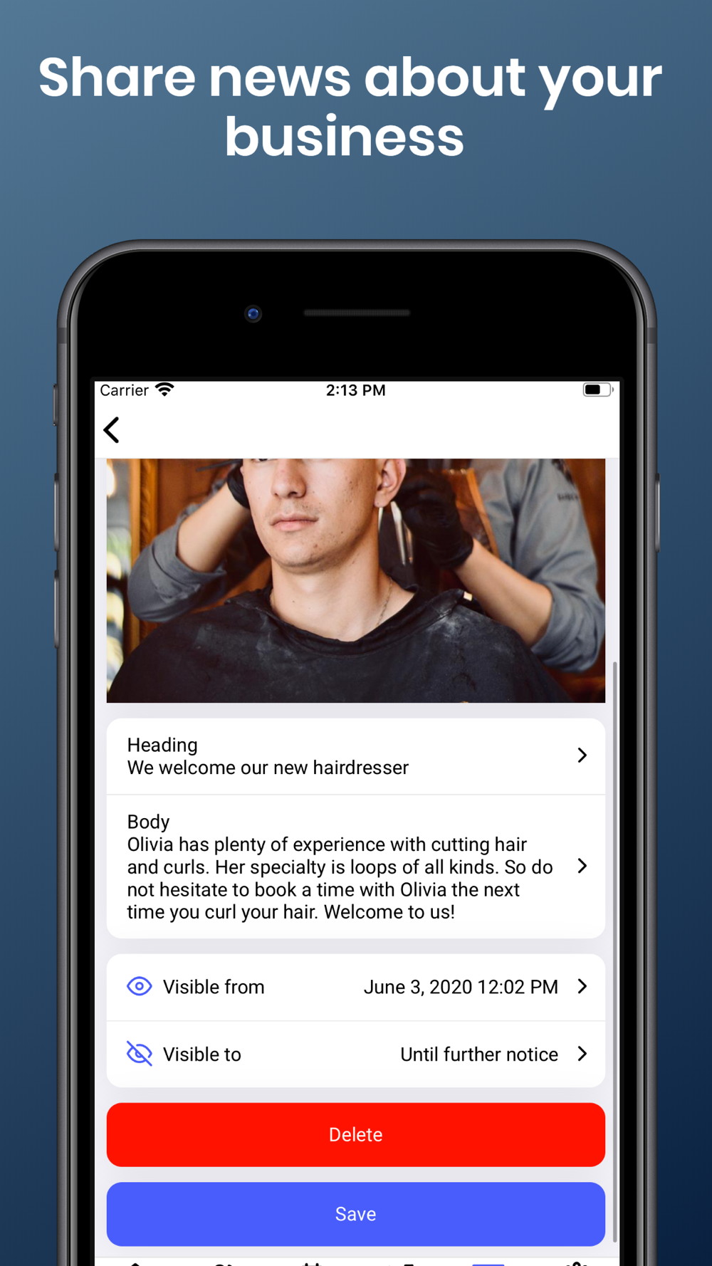 You can easily book / cancel times for your customers, contact them by phone / SMS or register new customers. You also have the opportunity to add inaccessible times and post news on your website.