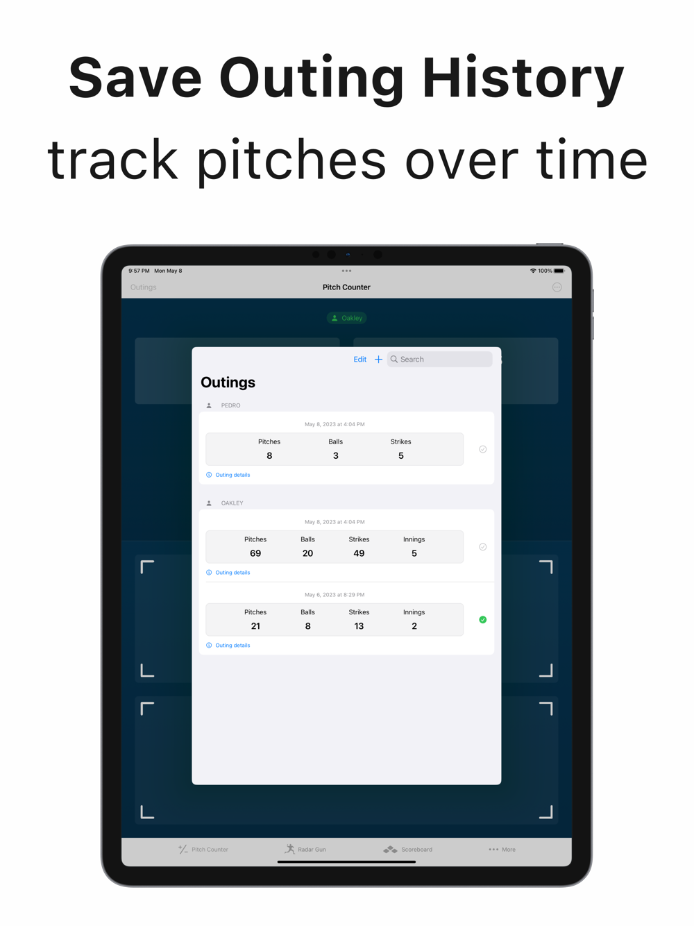 Pitch Counter & Radar Gun is the ultimate baseball, softball, and fastpitch utility app for iOS, iPadOS, and watchOS. This app bundles a pitch counter, radar gun (speed calculator), and scoreboard with an easy-to-use interface, making it the perfect tool for coaches, parents, players, and enthusiasts.