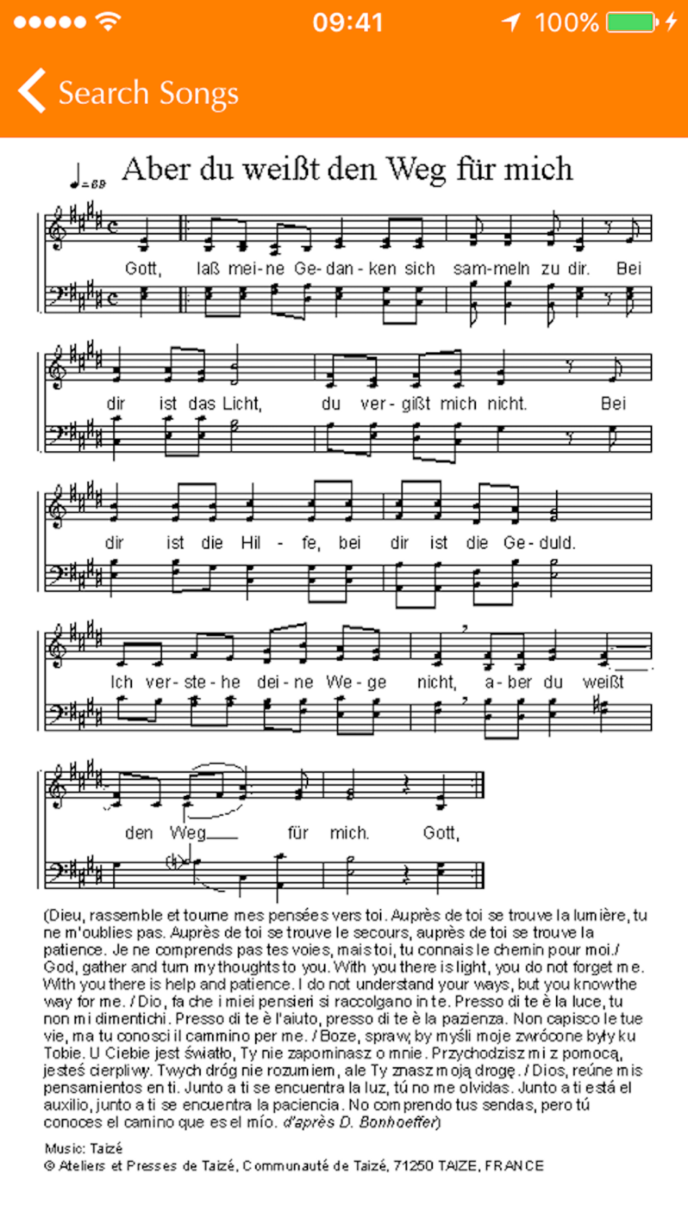 Taizé Music mobile reference and guide for the songs and prayer of Taizé. It contains the song sheets for Taizé music that can be accessed offline.