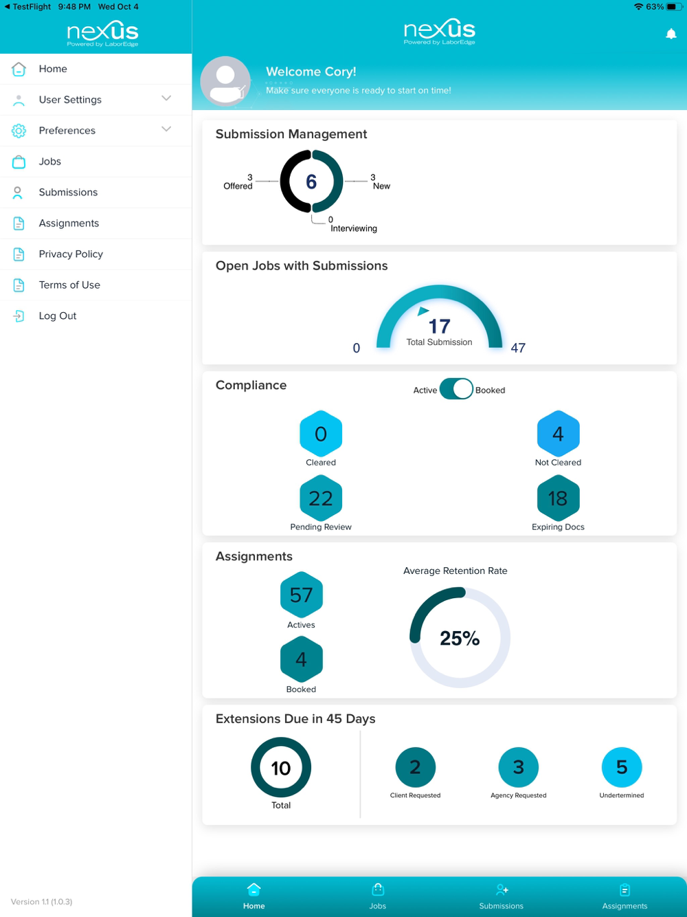 NexusVMS Mobile™ brings the power of NexusVMS directly to your hand. Whether managing Compliance, Assignments, Submissions, or Jobs – NexusVMS Mobile gives you the ability to work from anywhere and at any time. With the user permission configurability, it is ideal to be utilized by your VMS, Facility, and Agency end users!