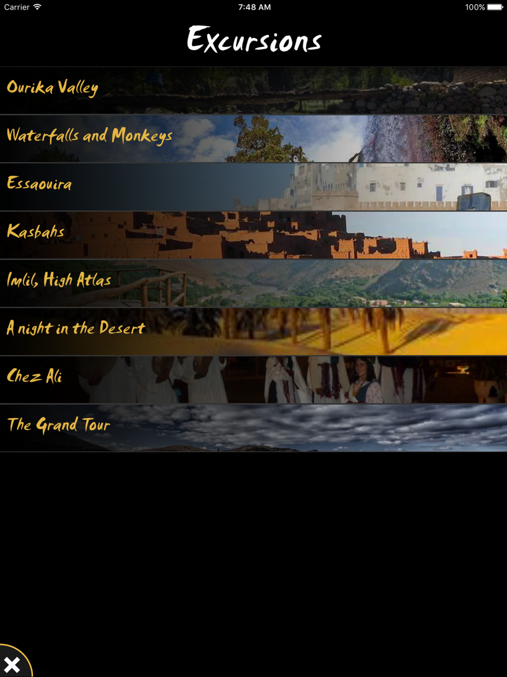 Details of excursions from Marrakech which can be booked up to the night before travel.
