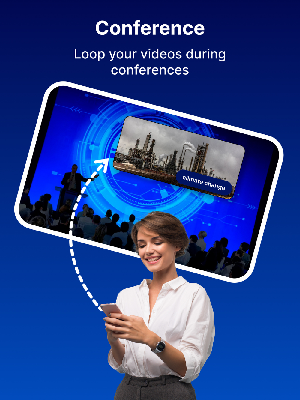 Loop videos easily to be displayed on your device or casted to an external device. Perfect for trade-shows, presentations, events, parties and more.