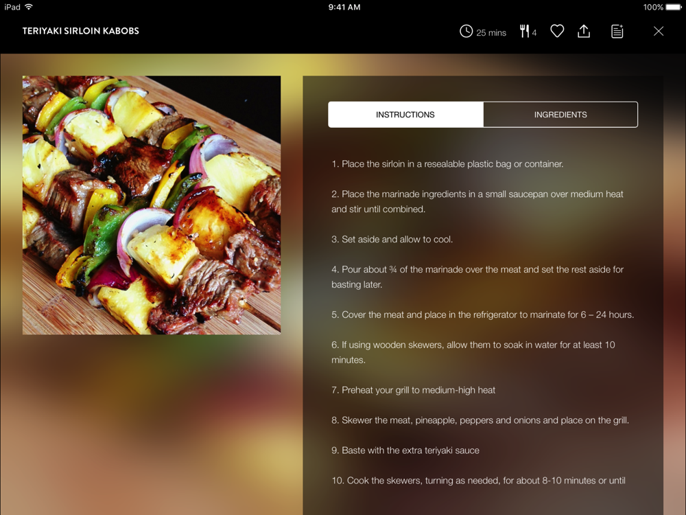 > Well designed ingredient and instruction pages on both iPhone and iPad to make the best use of screen space