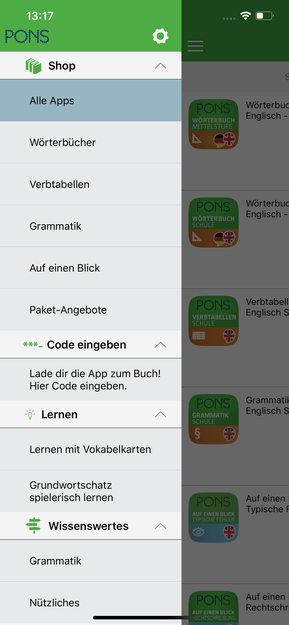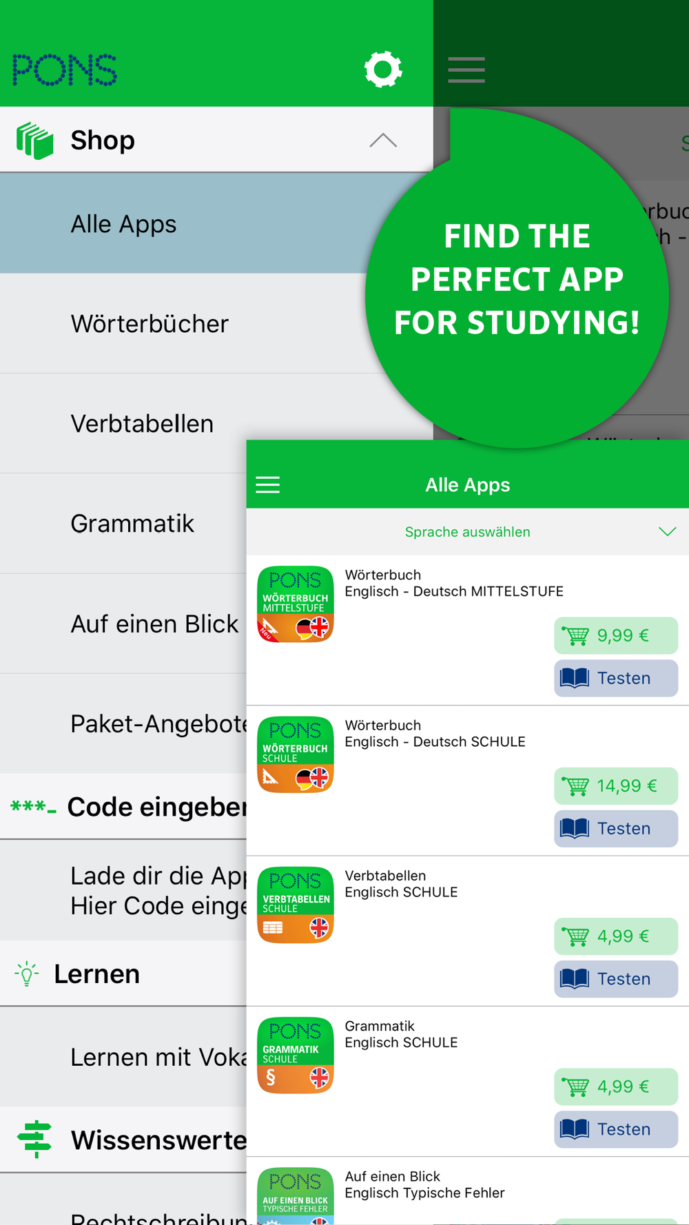 Diese Produkte kannst du dir in der App dazukaufen: Wörterbücher, Verbtabellen, Grammatiken und Lernhilfen.