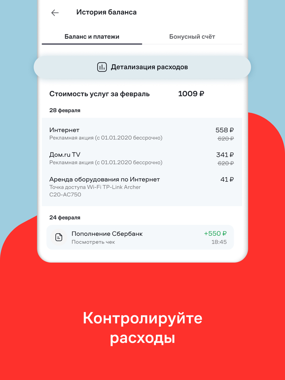 • А если непонятно, почему вам нужно заплатить именно такую стоимость за свои услуги, вы всегда можете разобраться из чего эта сумма состоит в разделе История баланса.