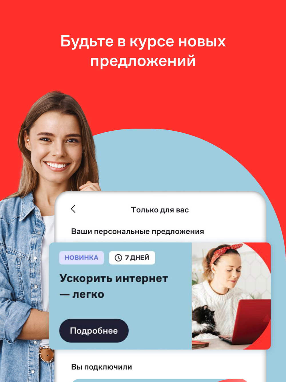• В разделе Скидки и акции мы собрали для вас только выгодные предложения. Узнавайте о новых акциях и подключайте их в любой момент.