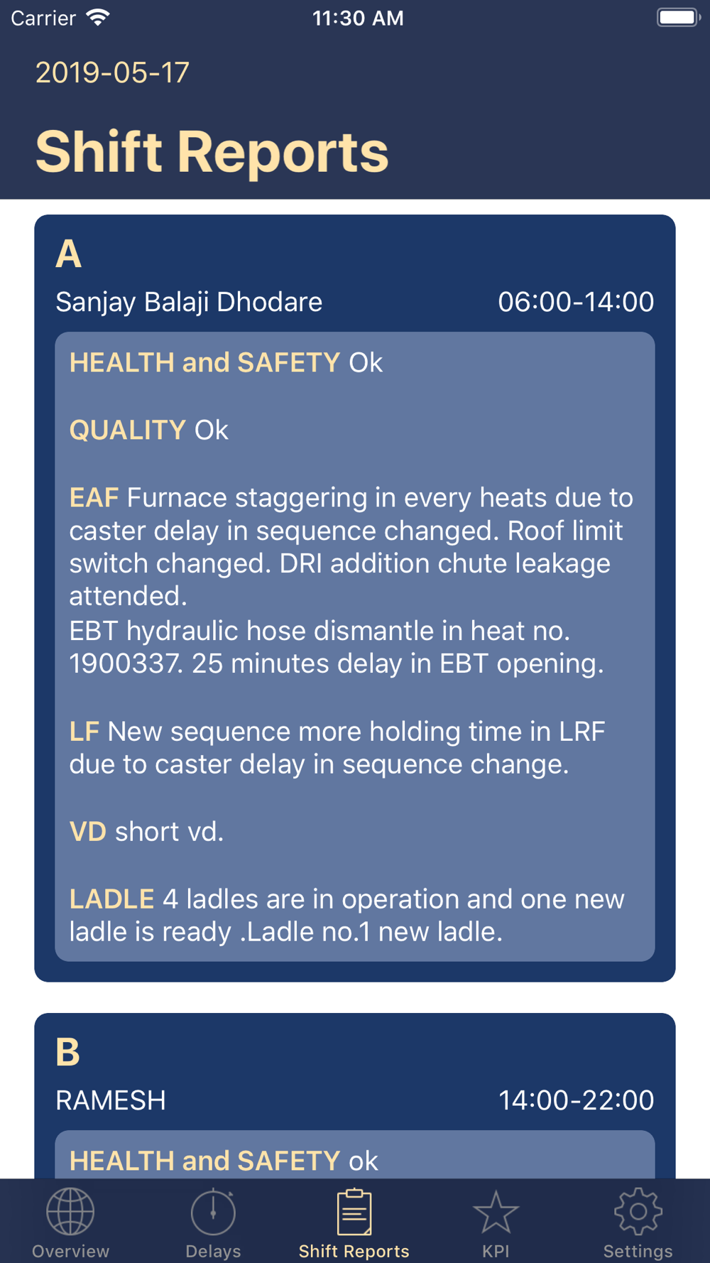 This app is part of the A4 Solutions’ Steel Plant Level 3 system that provides the real time plant status, report and operation statistics information. It is a valuable tool for steel plant operation and the management team in improving productivity and reducing cost.