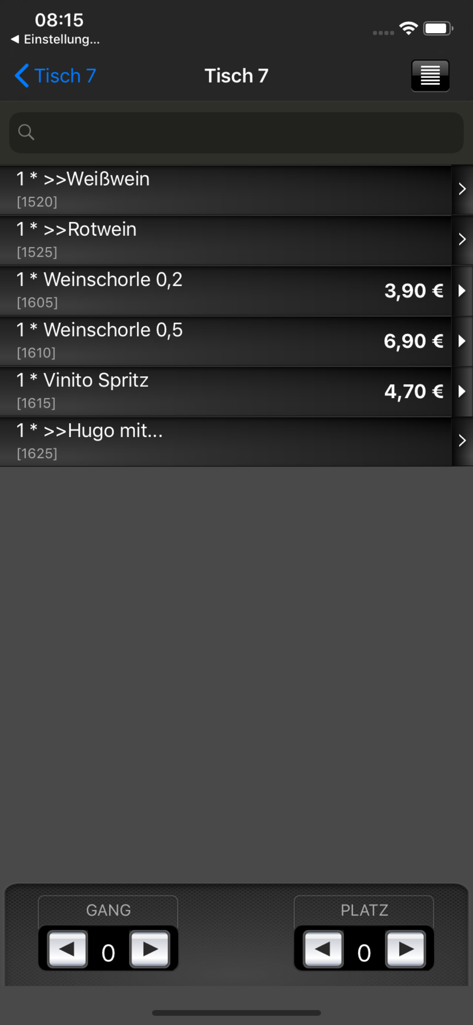 -Übersicht offener Tische (Eigene oder von Kollegen)