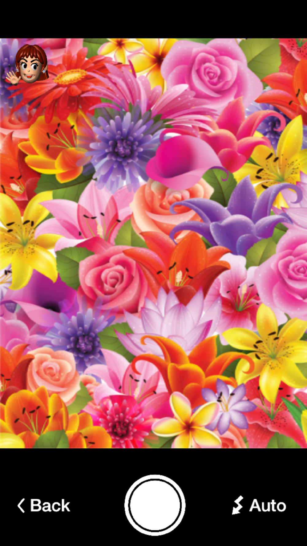 Flash setting button shown at right bottom changes like "Auto" -> "On" -> "Off" -> "Auto".