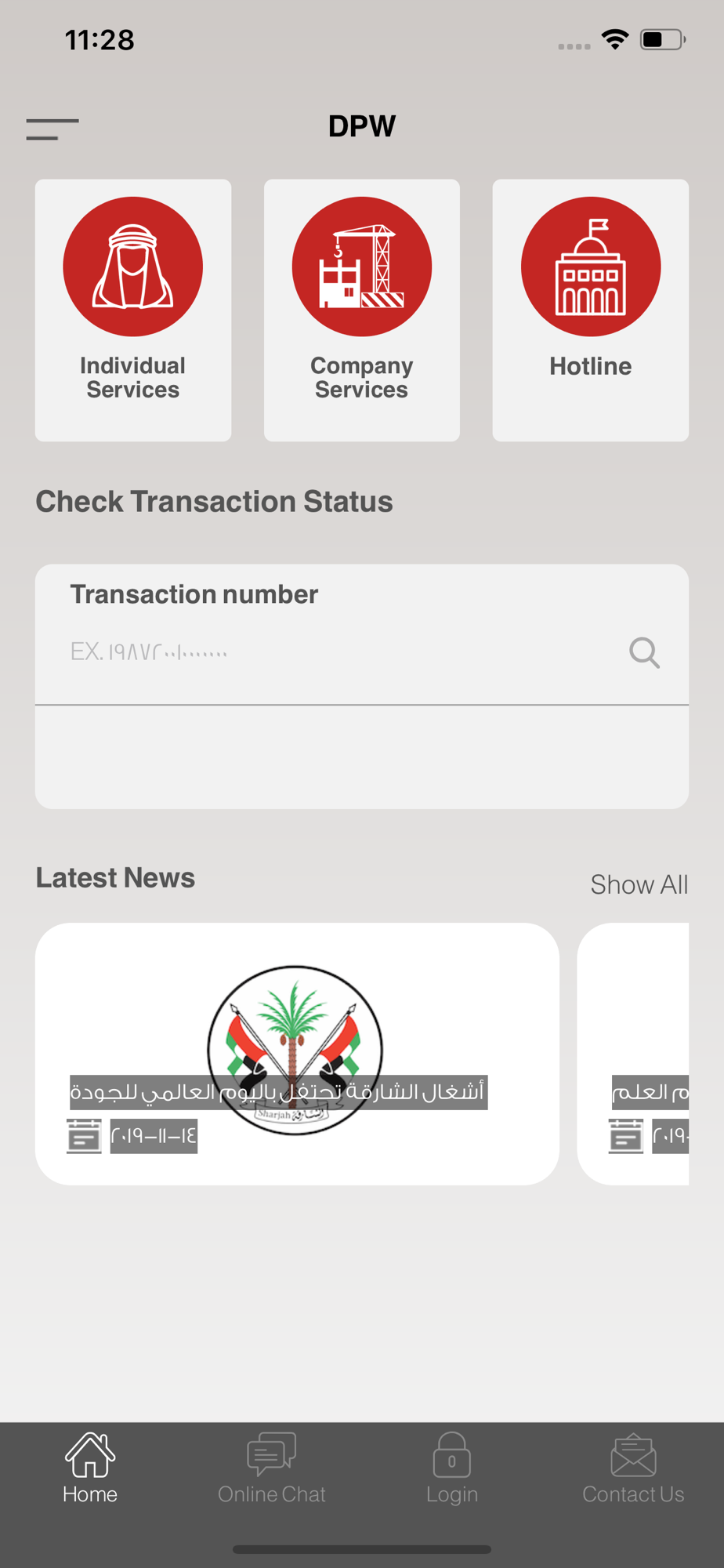 Through its mobile application, the Sharjah Department of Public Works (DPW) provides a number of smart services targeting individuals, companies and government sector. Individuals services include leveling and backfilling of a residential plot. Companies services include (Company New Registration/ Renewal and Projects' Payment Certificates), while Government services include (Hotline Service). In addition, the application also provides extra services including (Job Application, Contact DPW's Chairman, Suggestions & Complaints, Transactions Follow-up). DPW's application adopts high quality standards to ensure easy accessibility and to achieve customers' happiness.