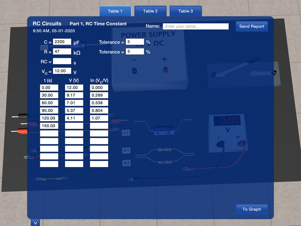 In addition to a 3D simulation that produces realistic data, each lab includes introductory videos, background theory, experimental procedure, analysis and reporting tools, pre-lab quiz, post-lab questions, and teacher support materials. The experimental data produced by the simulations are realistic, including random and systematic errors. These features allow students to use standard data analysis and error analysis techniques to report on their own unique data, just as if the experiment had been performed using hands-on equipment.