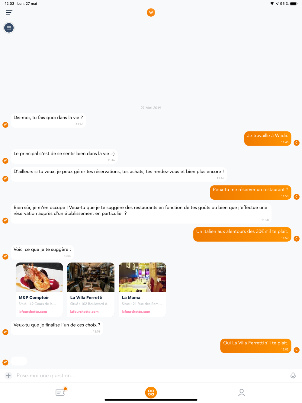Découvrez Wiidii, le premier assistant capable d’empathie au monde : combinaison unique d’une technologie d’intelligence artificielle (IA) de pointe et du savoir-faire de nos assistants humains.