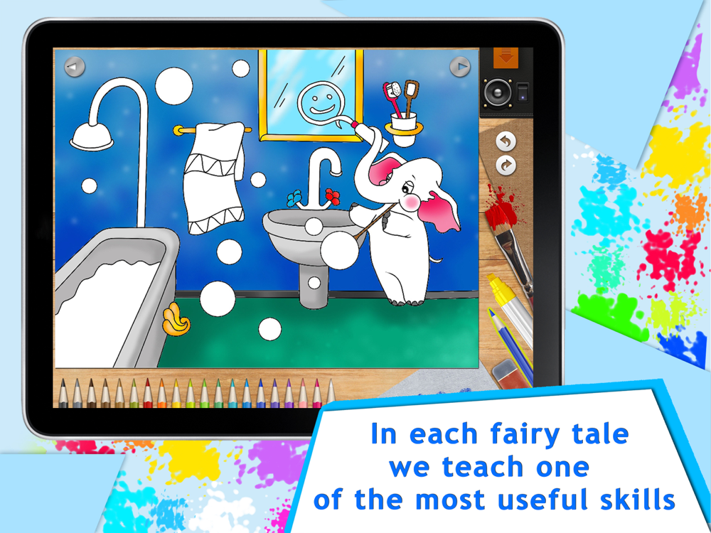 Coloring stories is a collection of funny, amusing and educational stories for kids. Each story is dedicated to a certain behavioral skill. It will help adults to instill good qualities to their kids without extra instructions. While carrying out tasks your child will be able to analyze behavior of the characters, give them advice and draw conclusions. Funny stories will turn the process of drawing into an amusing game and will keep the little fidget from getting bored. The pictures are unfinished or only half colored in which helps children to create their own masterpieces using the examples given. The child-friendly interface and set of tools and colors will facilitate creative work without confusing a kid.