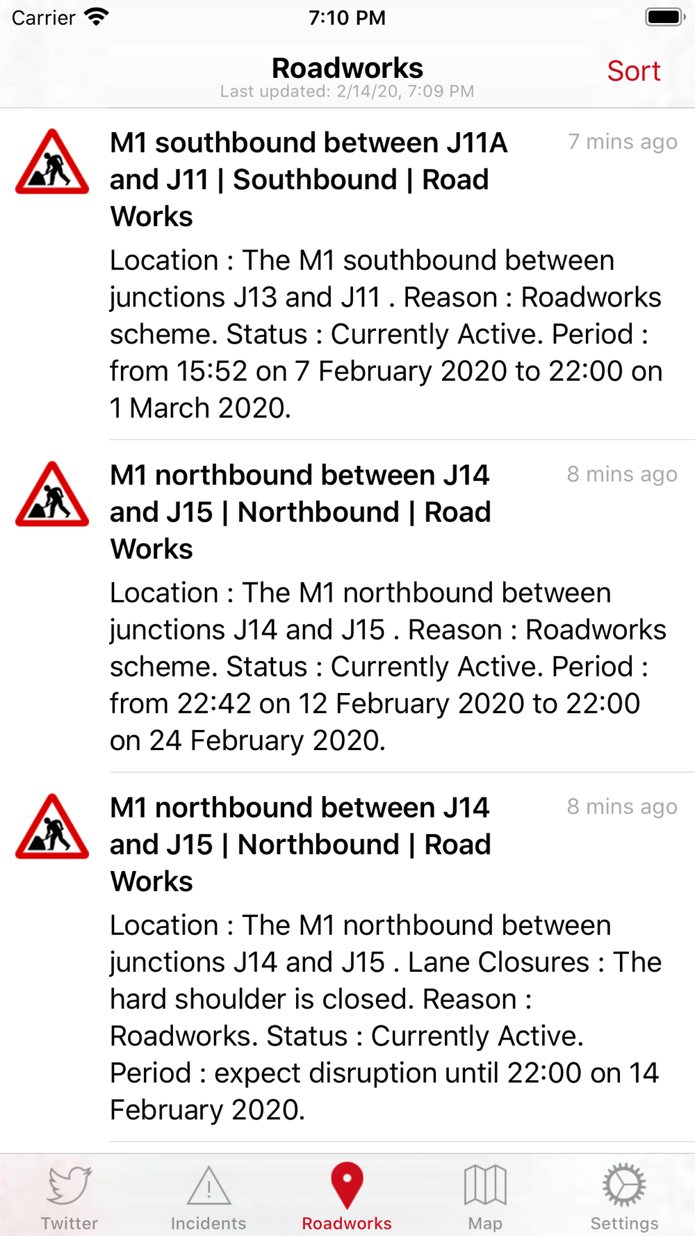 Live incidents and roadwork reports are collected and stored locally within the app. There’s no need to load any websites and the information is available when you have no signal.