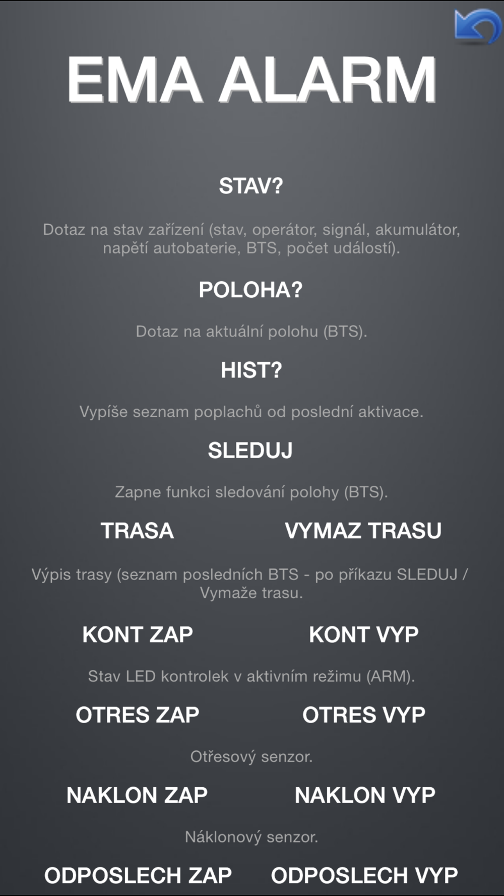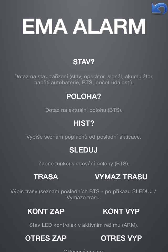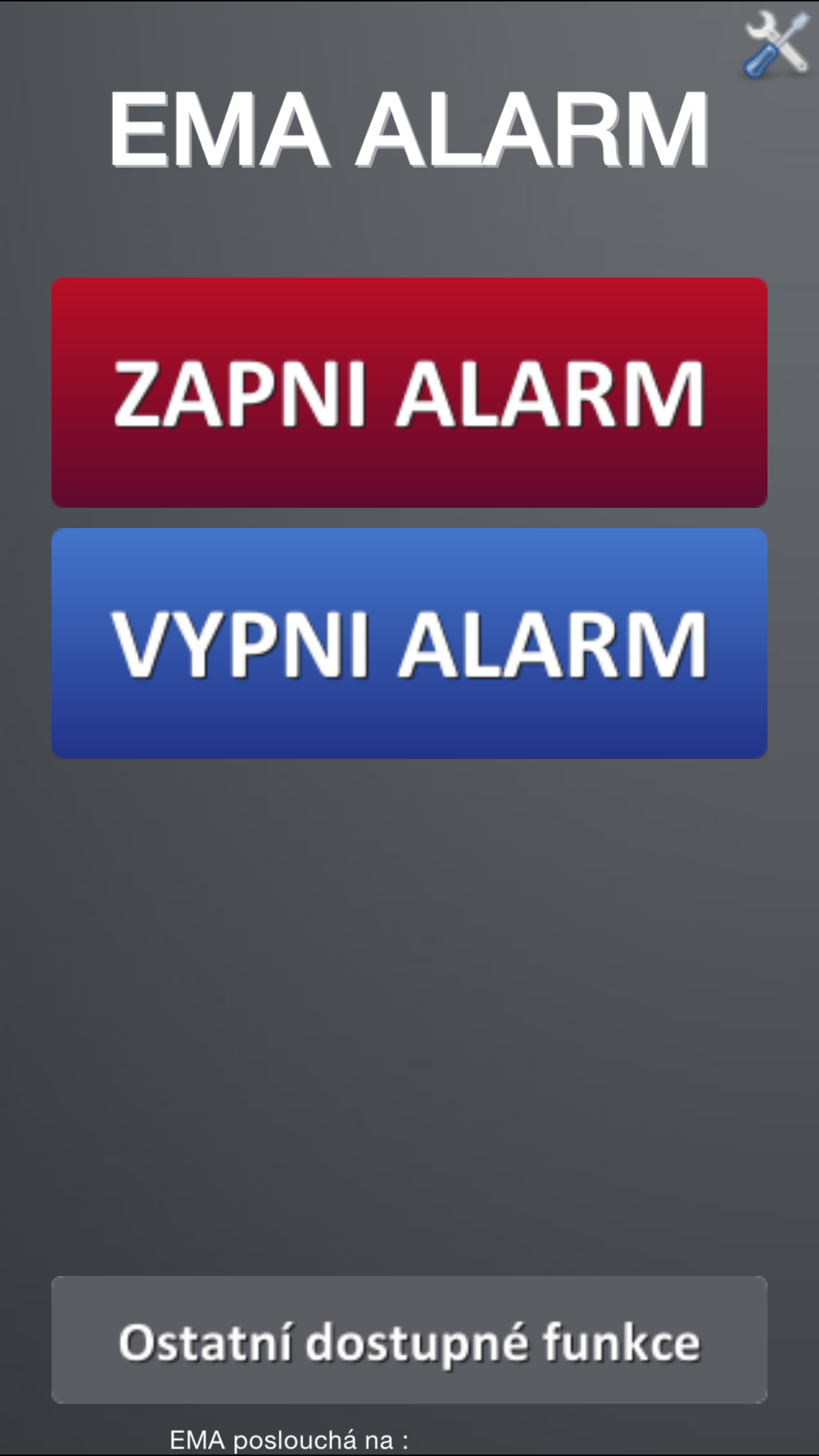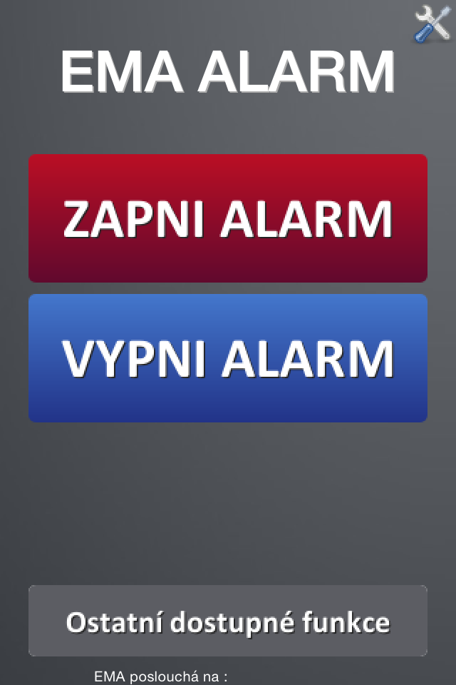 Pro rychlejší ovládání - ZAPNUTÍ a VYPNUTÍ alarmu. Přístup k dalším příkazům EMY (položka "Ostatní dostupné funkce").