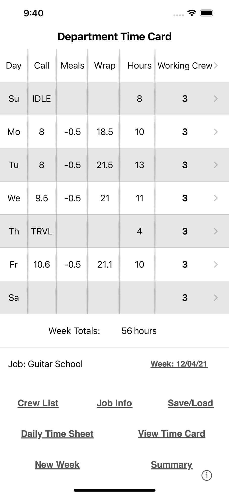 - Quick Summary Page for reviewing/editing of all Crew Members' times for the week