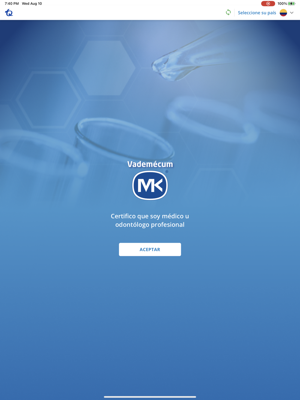 El profesional de la salud debe seleccionar el país donde desee consultar la disponibilidad de los medicamentos y sus presentaciones