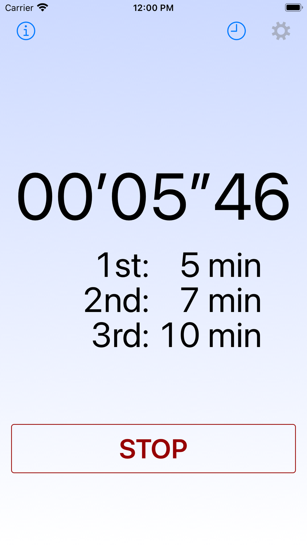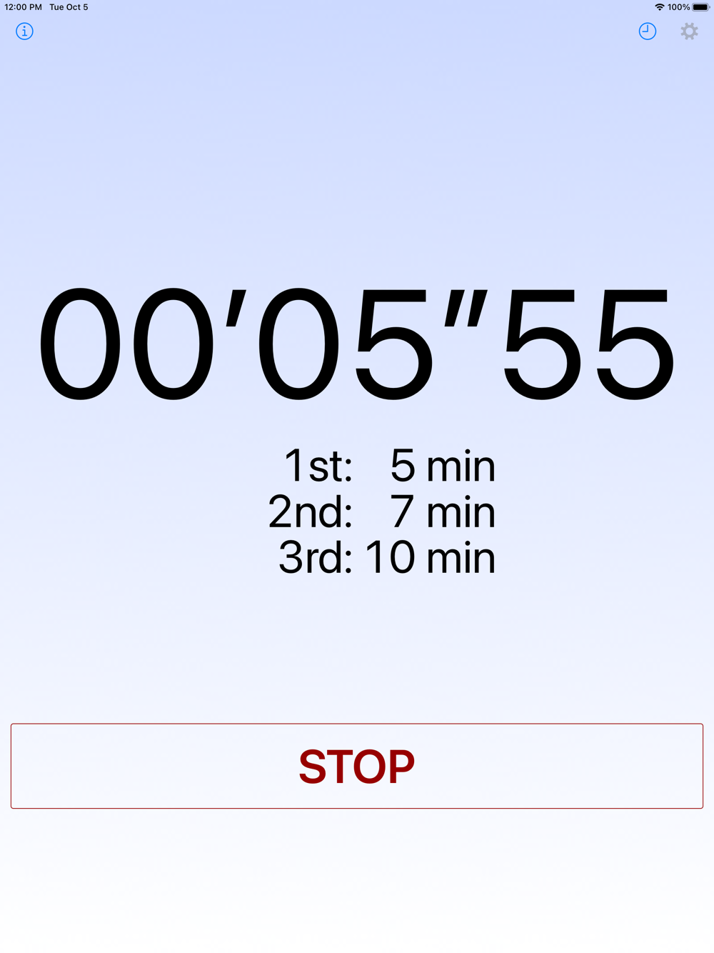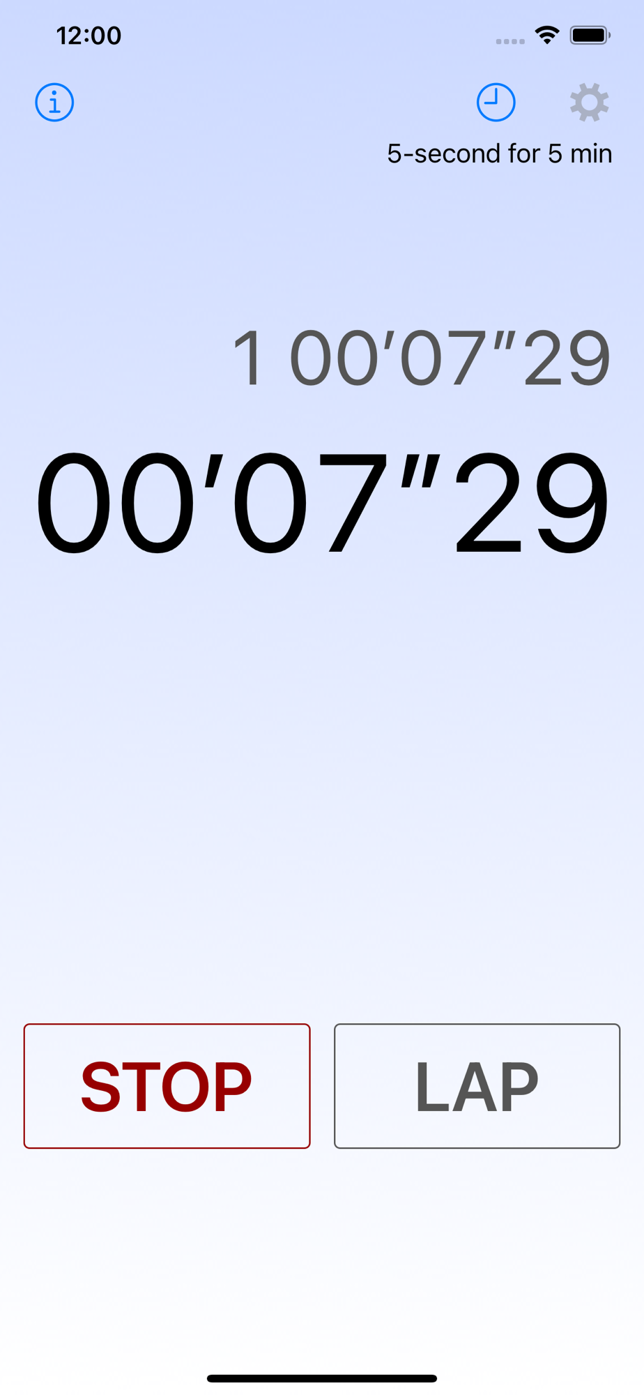 This app is a straightforward stopwatch with vocal announcements. It can notify you of elapsed time during music playback and while running in the background, utilizing local notifications. You can choose from ten notification intervals, ranging from 5 seconds to 10 minutes. This feature proves useful when you can't actively monitor your device.