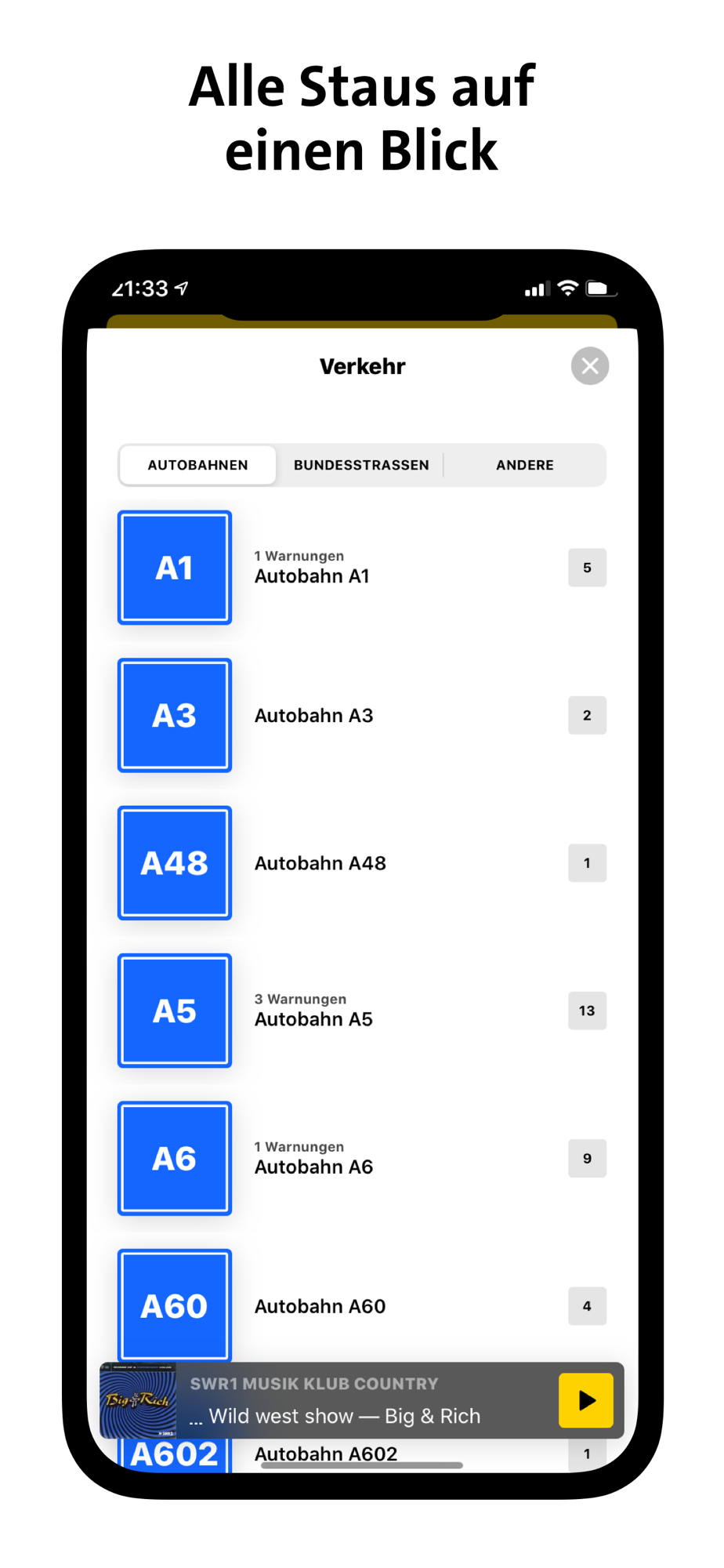 Notice: SWR1 App is free, but listening to audio streams consumes a lot of data which may generate additional costs depending on your mobile contract. Please be sure to use a data flat rate in order to avoid additional costs.