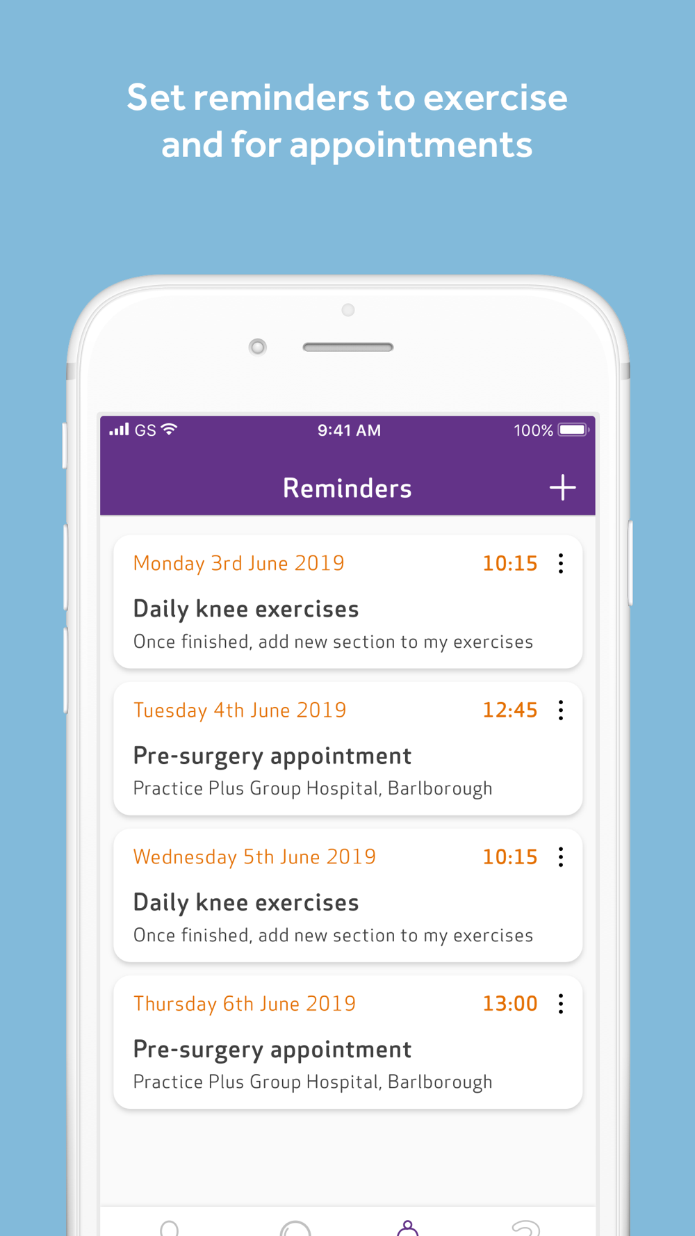 The app provides videos and text instructions on pre- and post-operative physio exercises, enabling you to establish a strong exercise regime before surgery that you can also continue afterwards, helping you to make a speedy recovery. You can even plan your own physio exercise regime using the reminder function.