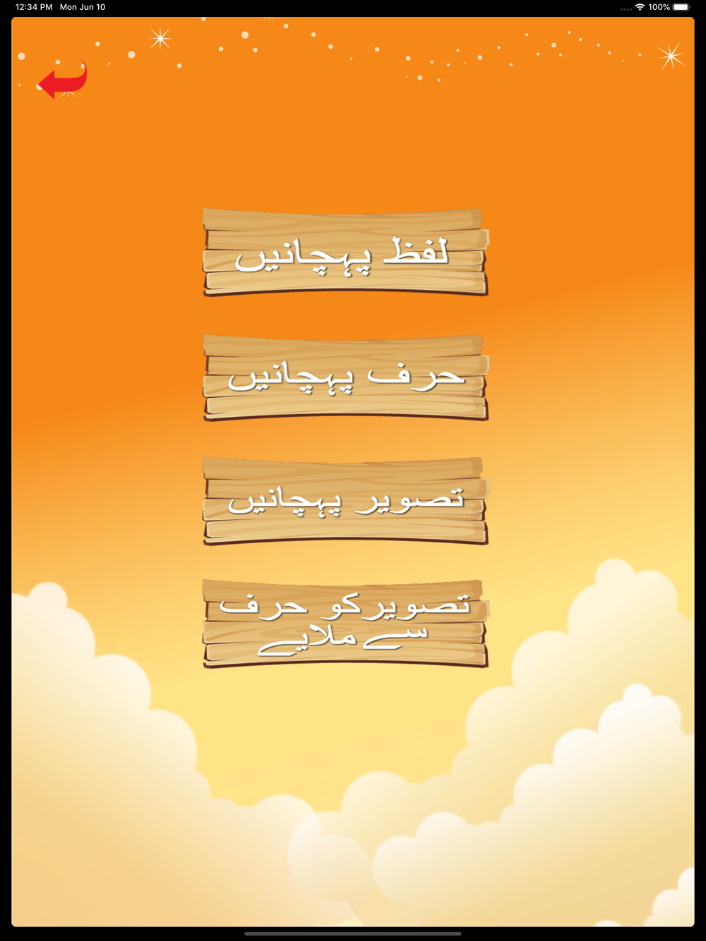 Seekhayn (Learn) is a feature in which kids learn all alphabets in Urdu by recognizing them with help of given relevant objects. The interactive sound also guides to correctly pronounce every letter.