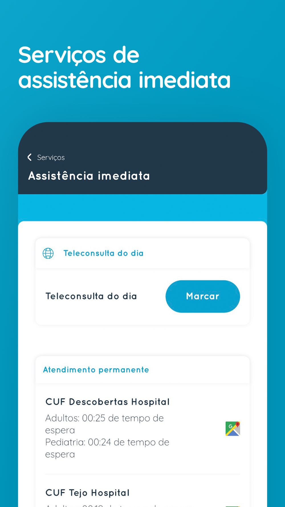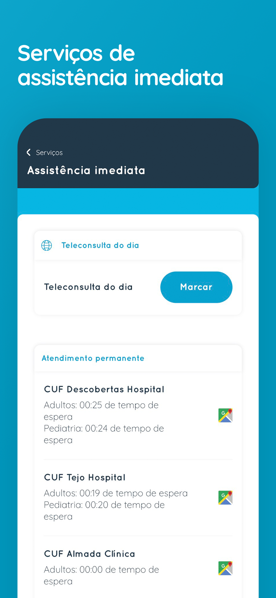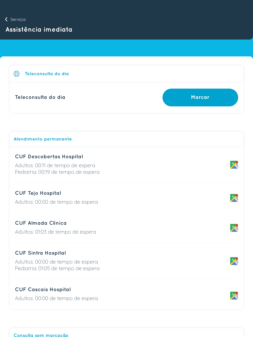 - Consultar todos os serviços de assistência imediata da CUF, incluindo tempos de espera dos Atendimentos Permanentes;