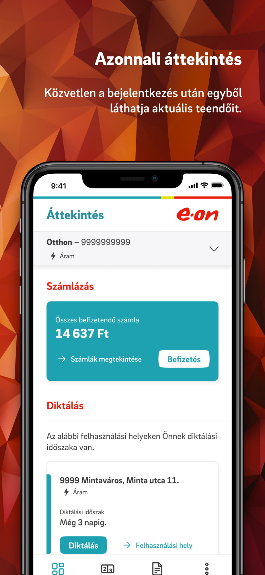 Töltse le és próbálja ki az E.ON ügyfélszolgálati mobilalkalmazását, hogy még kényelmesebben és egyszerűbben intézhesse ügyeit. Az applikációval a nap 24 órájában, néhány perc alatt elvégezheti ügyeit.