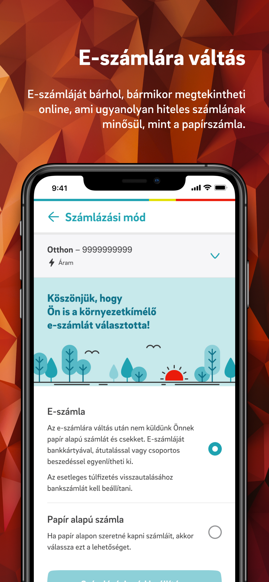 • Számlabefizetés és megtekintés – egyszerűen befizetheti számláit az alkalmazáson keresztül. Számláit megtekintheti és le is töltheti.
