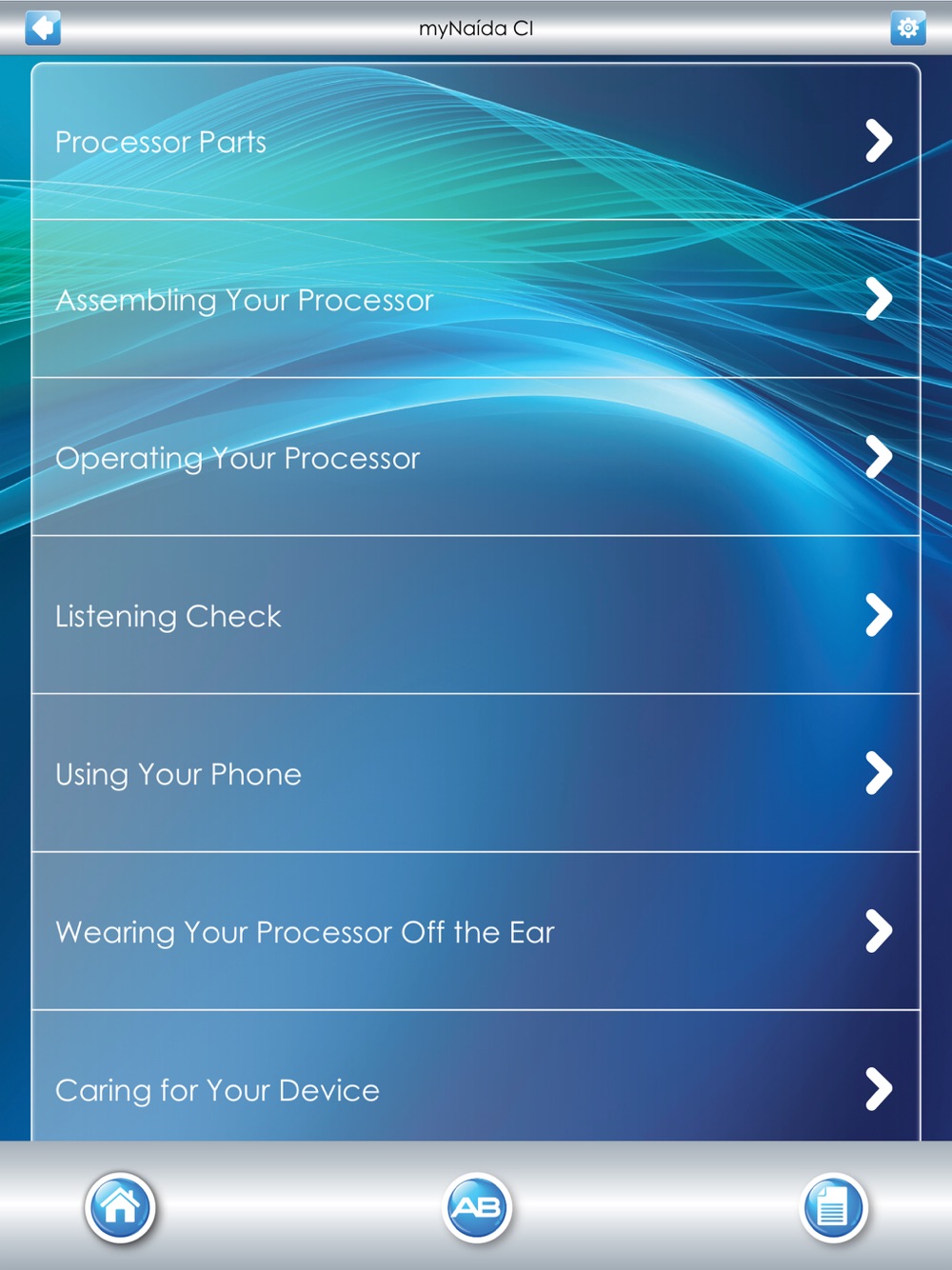 The myNaída CI app is a dynamic and user-friendly guide to the Naída CI sound processor series. It is the perfect tool for hearing healthcare professionals, cochlear implant recipients, and people considering a cochlear implant for themselves or a loved one who want to learn how to get the maximum benefit from the exciting features and accessories of Naída CI, the most advanced sound processor available.