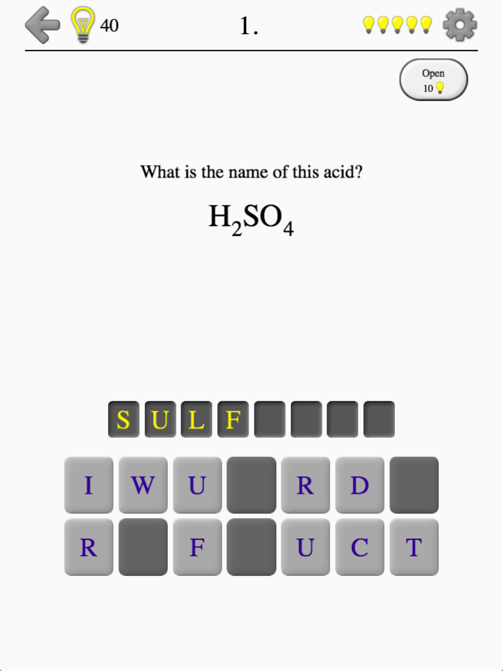 The app is translated into 9 languages, including English, German, French, and many others. So you can learn the names of the acids and ions in any of them.