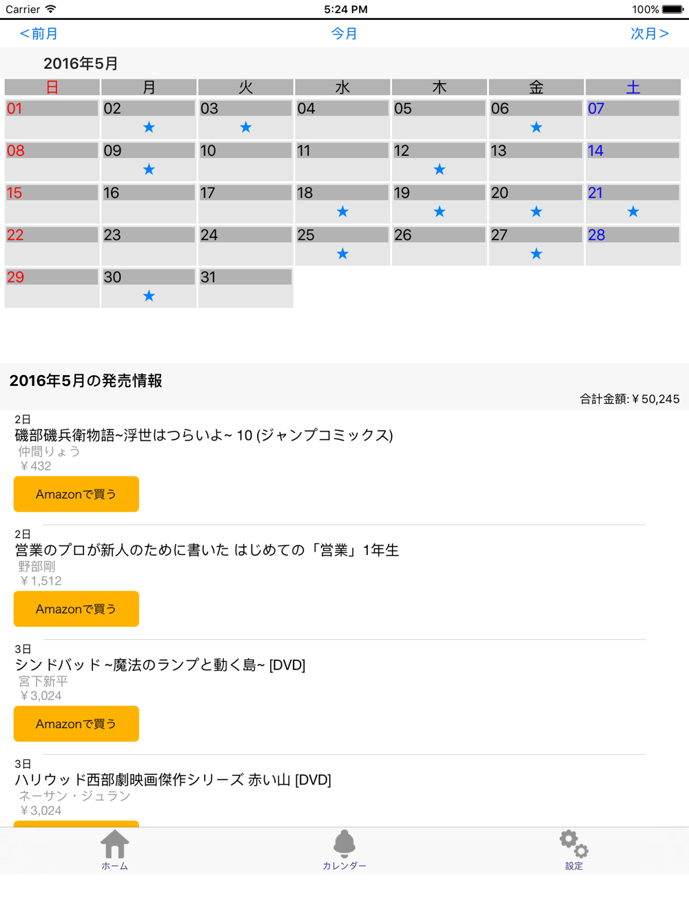 登録したタイトルや著者、アーティストだけの発売日カレンダーやリスト表示をします。