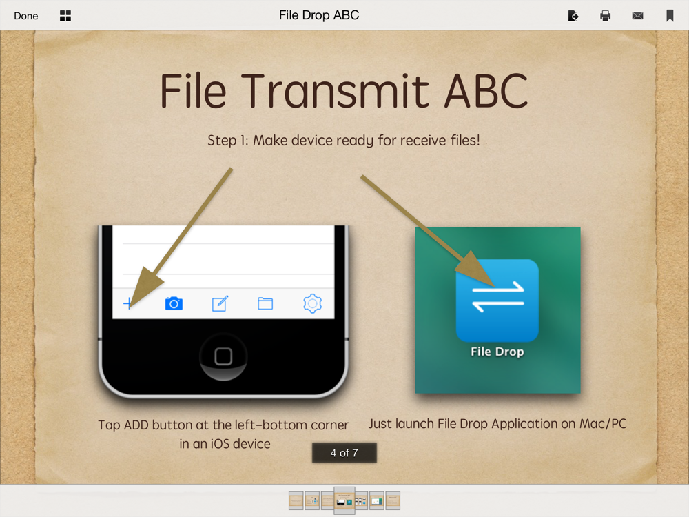 File Drop can help you transmitting and managing files and folders among iPhone, iPad, iPod touch, Macintosh and Windows PC. Just tap your fingers and the file dropped.