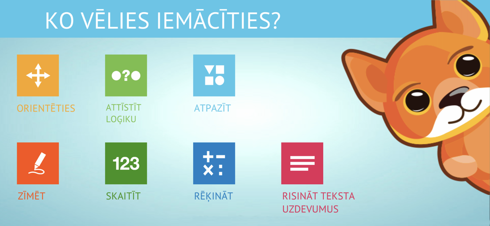 Aplikācijā ietvertie uzdevumi ir izstrādāti, balstoties uz Valsts izglītības satura centra ieteikumiem, un tematiski sagrupēti, piedāvājot bērniem iespēju mācīties: